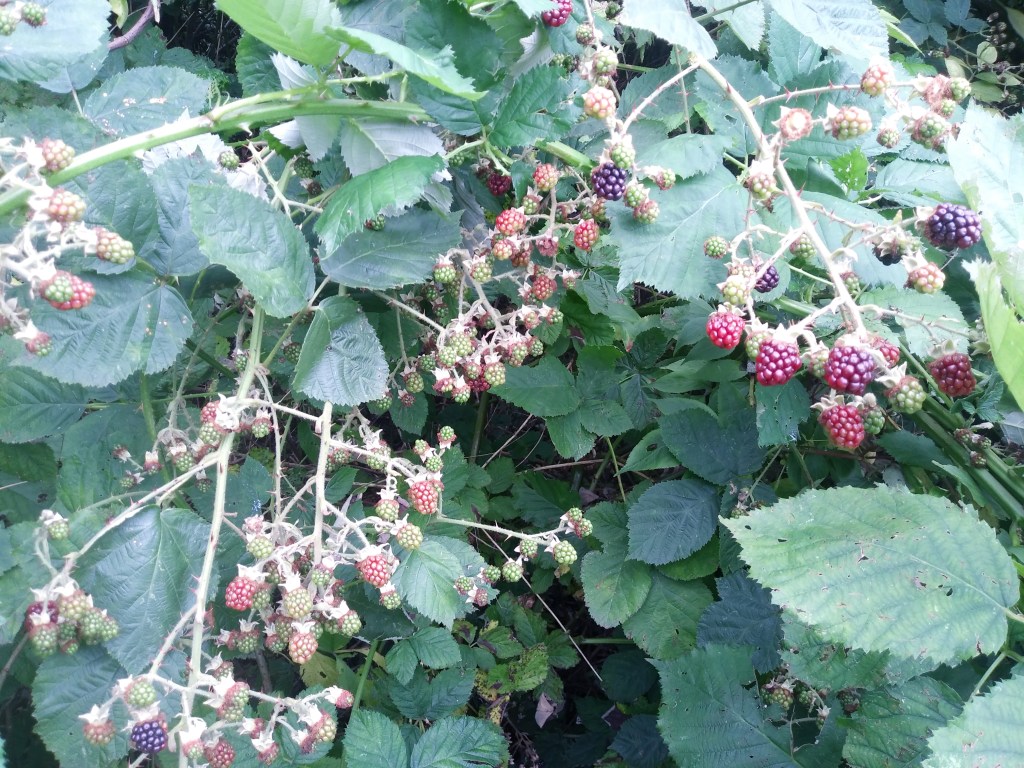 Pan Mąż zerwał mi kilka dojrzałych jeżyn 😊 Pyszne ! Jest tych krzewów od groma. Były też poziomki i orzechy laskowe 🌰 Jeszcze niedojrzałe. Do tego mnóstwo tzw. „dziadów”-„rzepów”, które przyczepiają się do ubrań i włosów 😁