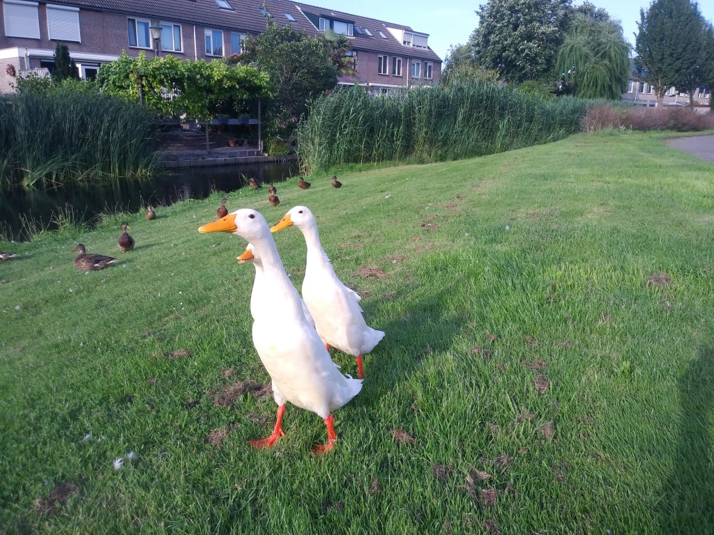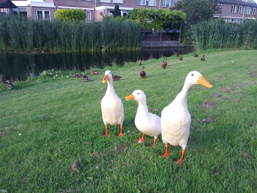 Niedaleko naszego domu jest spory kanał, gdzie spacerują teraz łabędzie ze swoimi młodymi. Do tego dzikie kaczki razem z moimi dobrymi znajomymi, czyli białym trio 😊 Już wymyśliłam dla nich imiona: Dyzio, Hyzio i Zyzio 😁