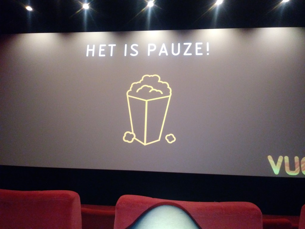 Chciałam tu napisać o dwóch znaczących różnicach między polskim a holenderskim kinem. Po pierwsze- można tu podczas seansu pić alkohol! Oczywiście jest popcorn, cola i inne takie. Ale jeśli się ma ochotę na piwo: proszę bardzo, jest. Wino białe i czerwone też 🍺🍷Druga rzecz, to… pauza. Tak, w połowie filmu jest przerwa. Można iść do toalety, po jedzenie i picie albo po prostu podyskutować o filmie 🙂