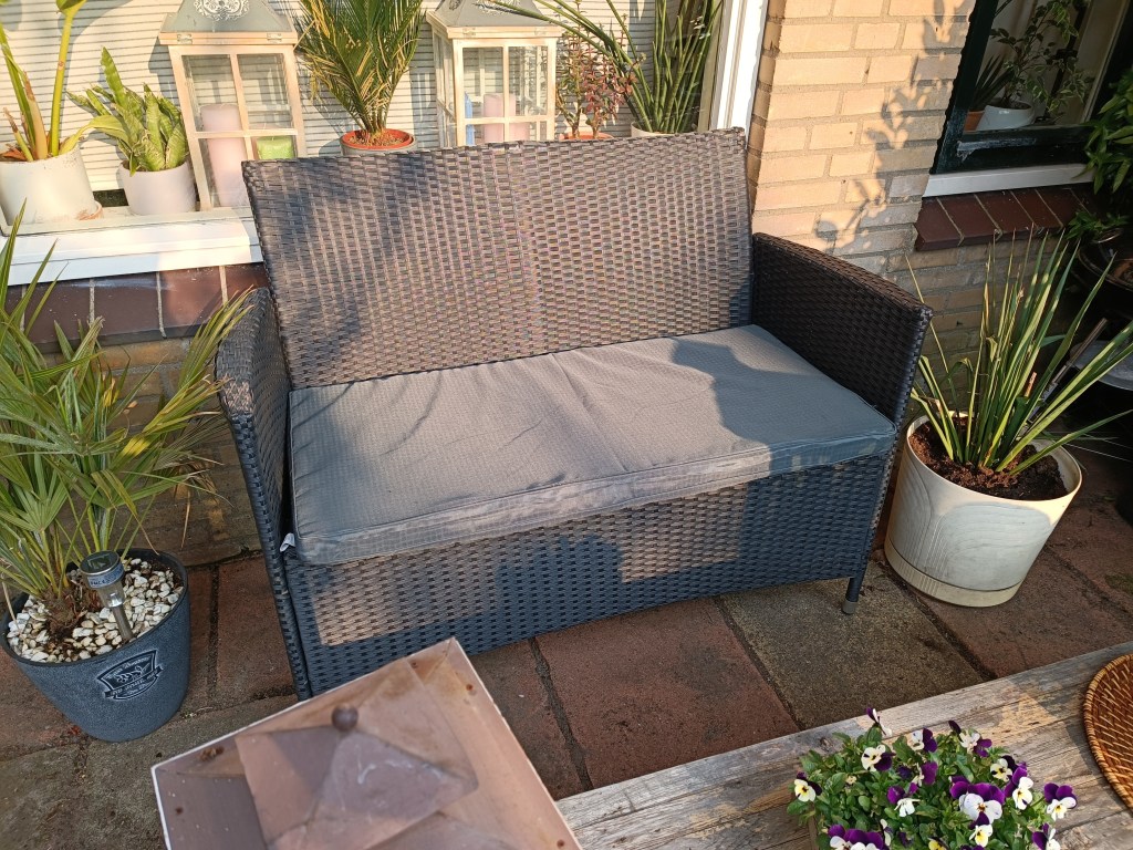 Już kiedyś pisałam, że na przerwach w pracy nie gadam z ludźmi o głupotach. Mam inne zajęcie: przeglądam Marktplaats 😁 I kolejny raz utwierdzam się w przekonaniu, że warto. Wypatrzyłam tuinbankje, czyli kanapę ogrodową za 20€. I nie trzeba było po nią daleko jechać, bo odbiór był w naszym mieście:) Poprosiłam o zarezerwowanie mebla, bo mogłam pojechać po niego dopiero na drugi dzień. Babeczka się zgodziła i dostała ode mnie skrzynkę pomidorów 🍅
