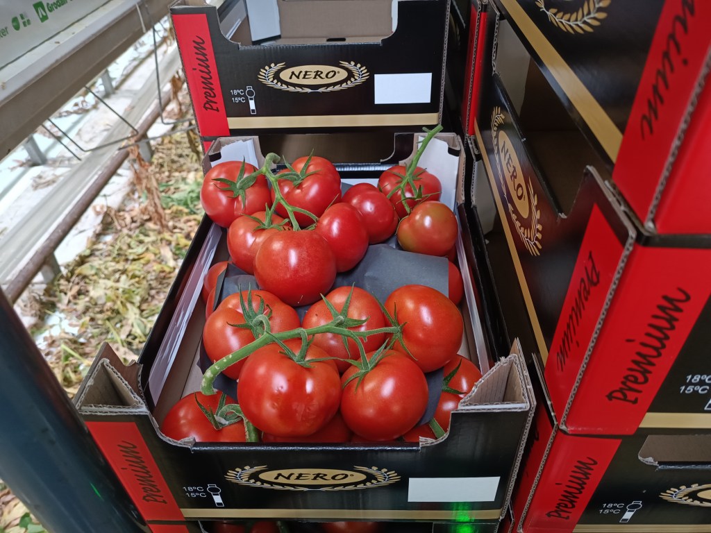 W tym roku mamy inną odmianę pomidora 🍅 Jest intensywna w smaku i zapachu. Po prostu pyszna. A pomidor, to moje ulubione warzywo. Ja w ogóle jestem team warzywa. Ten sezon należy do dziewczyn. To głównie my ścinamy pomidory. Szef uznał, że jesteśmy szybsze i dokładniejsze od facetów. Nie kombinujemy. Uwielbiam ścinać. Nie jest to ciężka praca. Problemem może być jedynie przesuwanie skrzynek, ale wózki mają rolki i można je łatwo przesuwać. Wystarczy opracować swój system. Poza tym wózki są elektryczne i jeżdżą same. Wygoda.