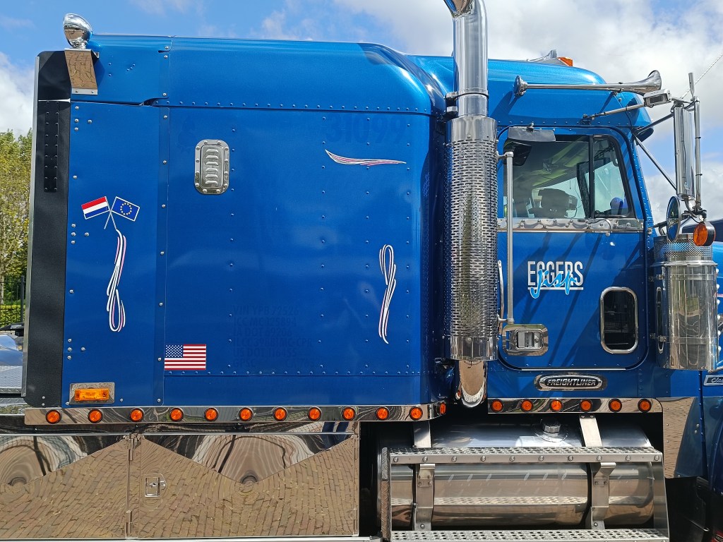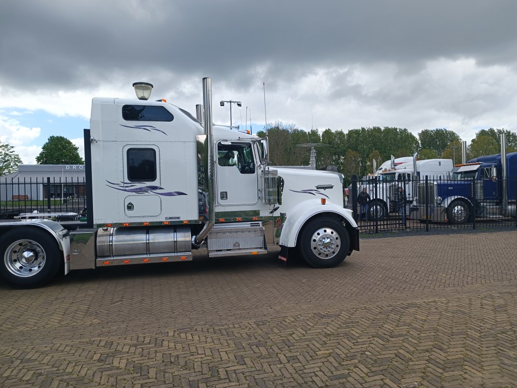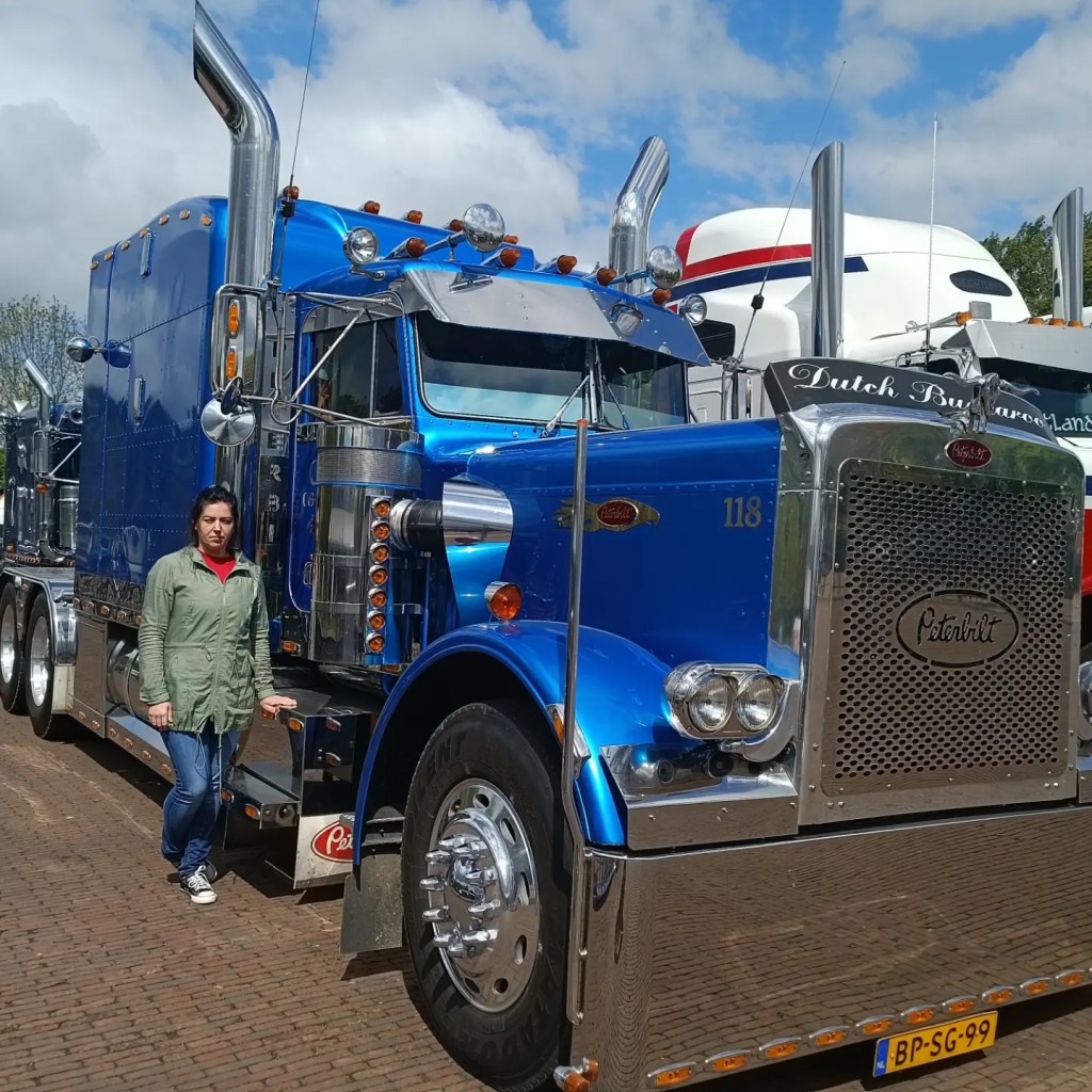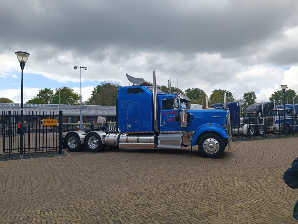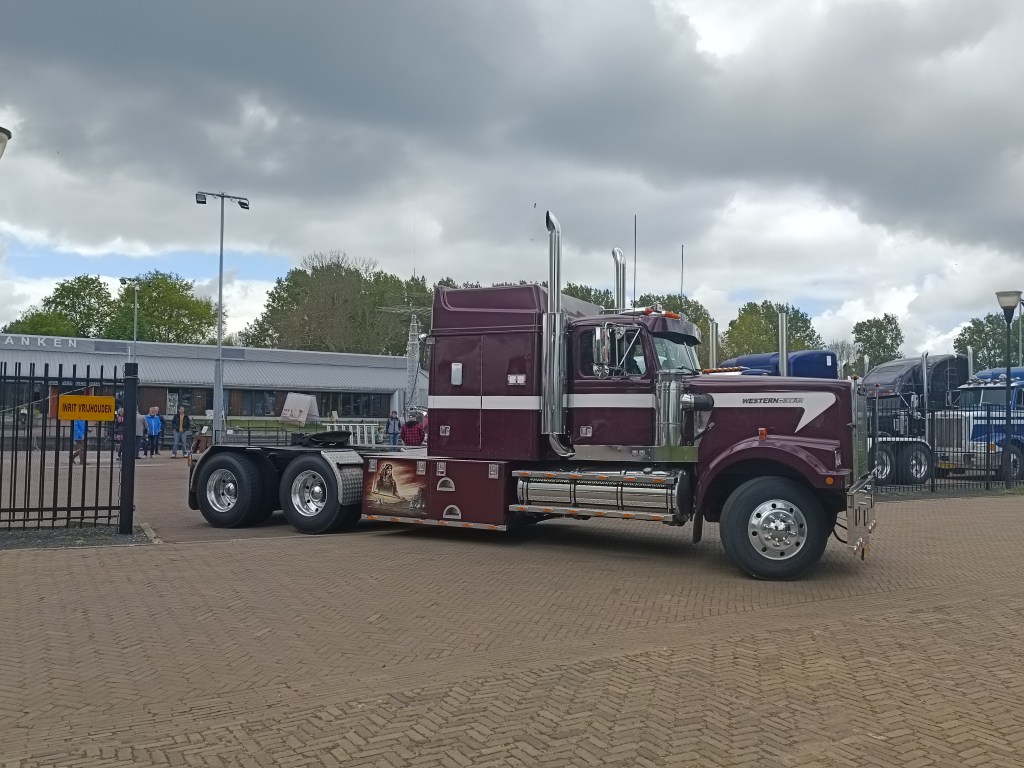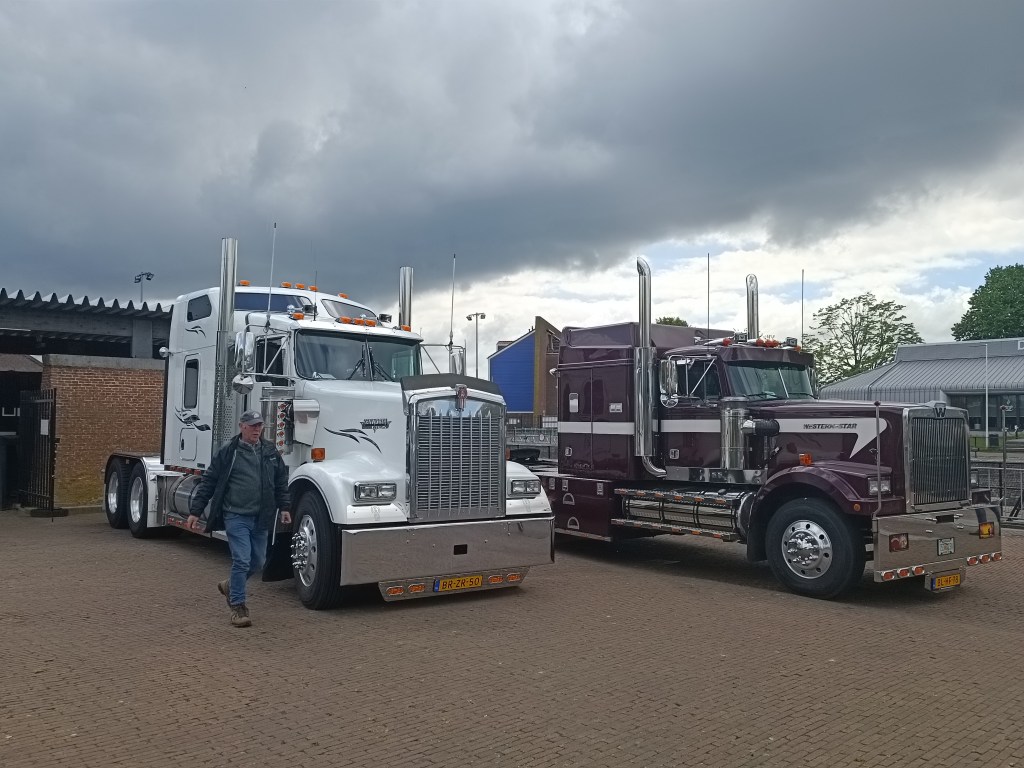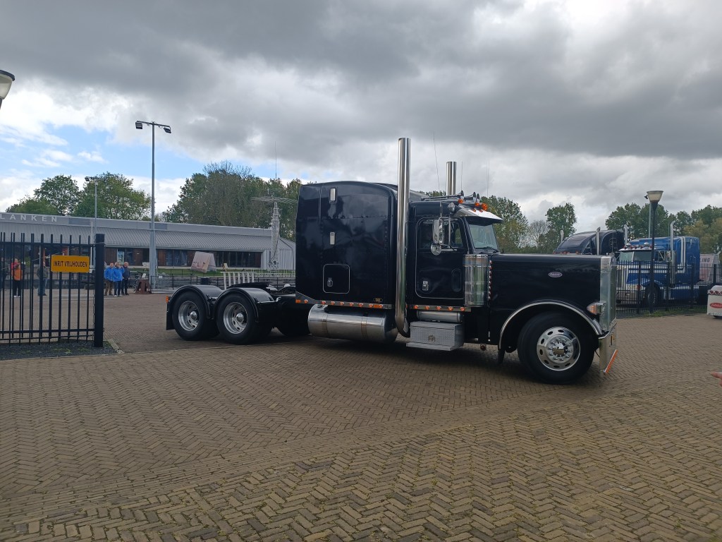 Jechały na Stare Miasto, tam gdzie port i wiatrak, czyli w część miasta, gdzie wcześniej wynajmowaliśmy mieszkanie. Pierwsza myśl: zlot. Musieliśmy to zobaczyć. Dlaczego? Bo te amerykańskie giganty zawsze robią wrażenie. Mnie zawsze kojarzą się ze świąteczną reklamą Coca-Coli. Te, co tutaj się pojawiły, były na holenderskich blachach. Każdy potworek miał swoją nazwę 😁 Tak, jak łodzie przycumowane w porcie.