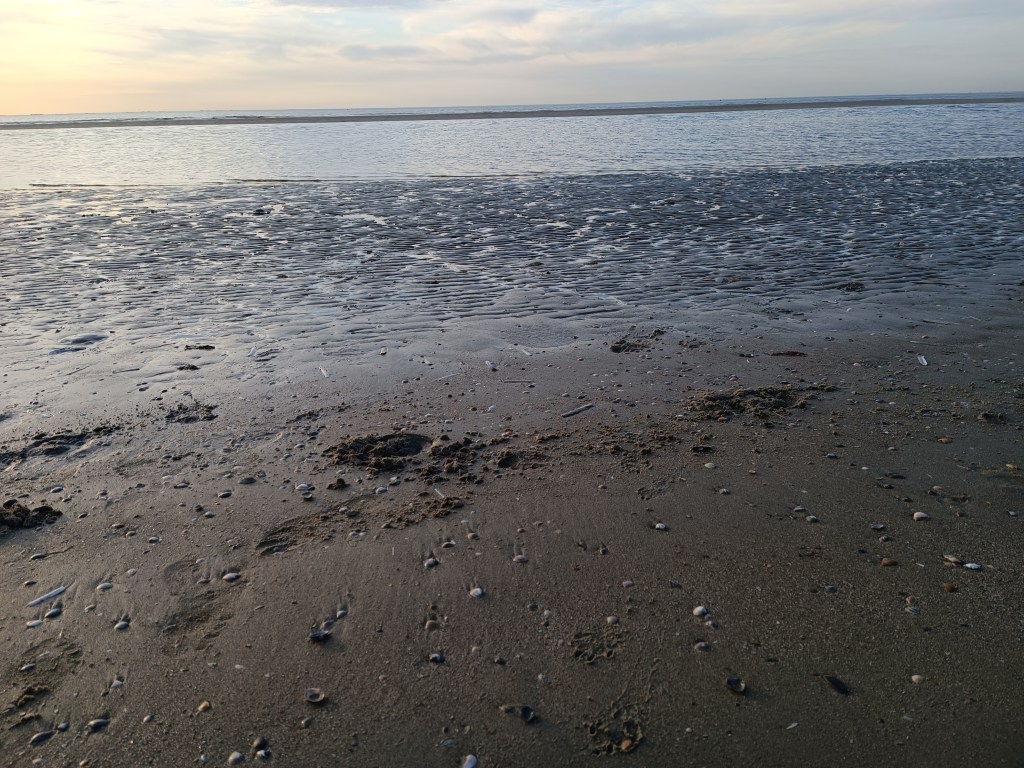 Trzeba przyznać, że holenderskie plaże są szerokie, długie i przede wszystkim czyste. Jest ich poza tym ogrom. Po prostu piękne 😊 Na plażach w Ouddorp najlepiej widać odpływy. Od wejścia na plażę, do samego morza, szliśmy dzisiaj niemal kilometr, mijając po drodze mnóstwo muszelek, meduz i bajorek. Miałam na nogach klapki i koniecznie musiałam sprawdzić jaka jest woda. Jeszcze zimna. Ale pierwsze moczenie kopyt zaliczone 😁