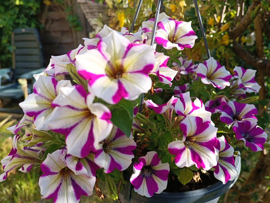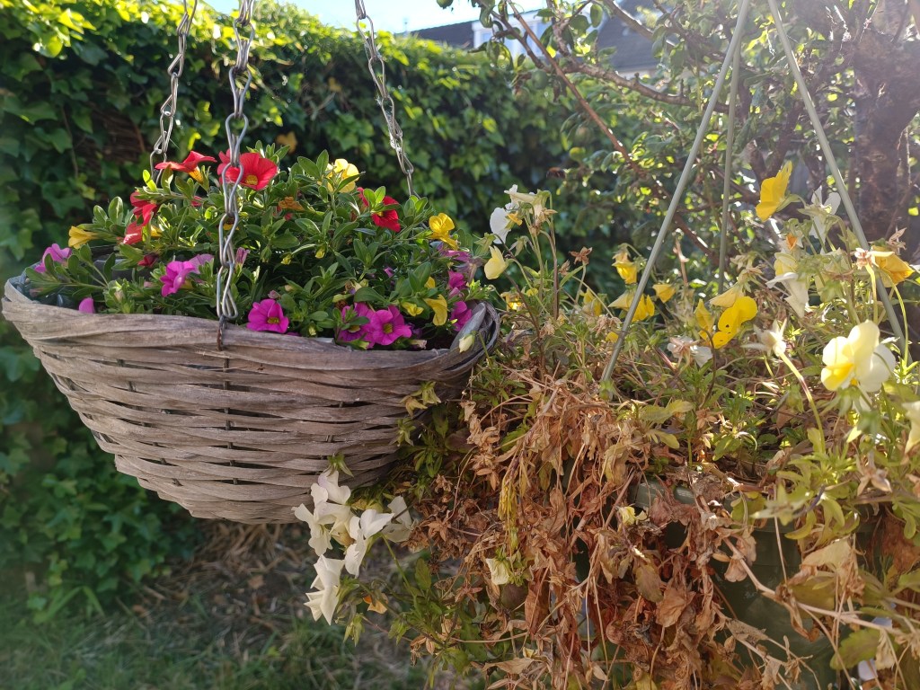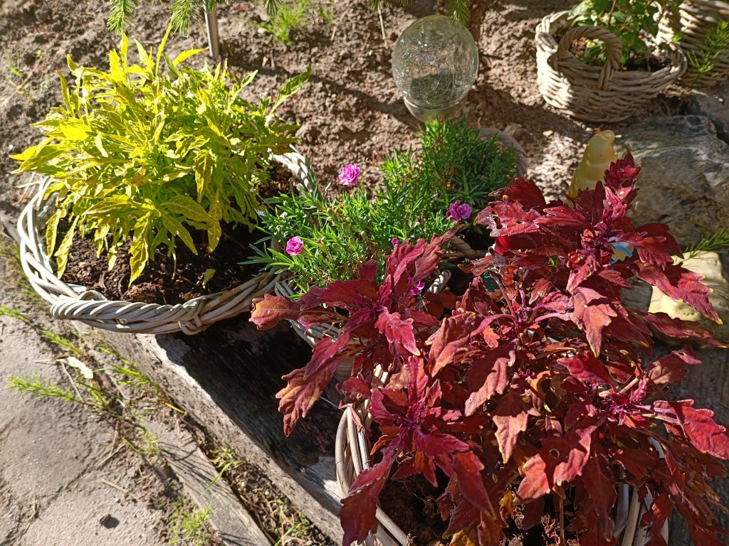 Reszta roślin super wyrasta i kwitnie. Mam kilka kwiatów w wiszących doniczkach i powiesiłam je na gałęziach drzewa.
