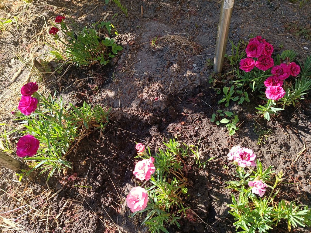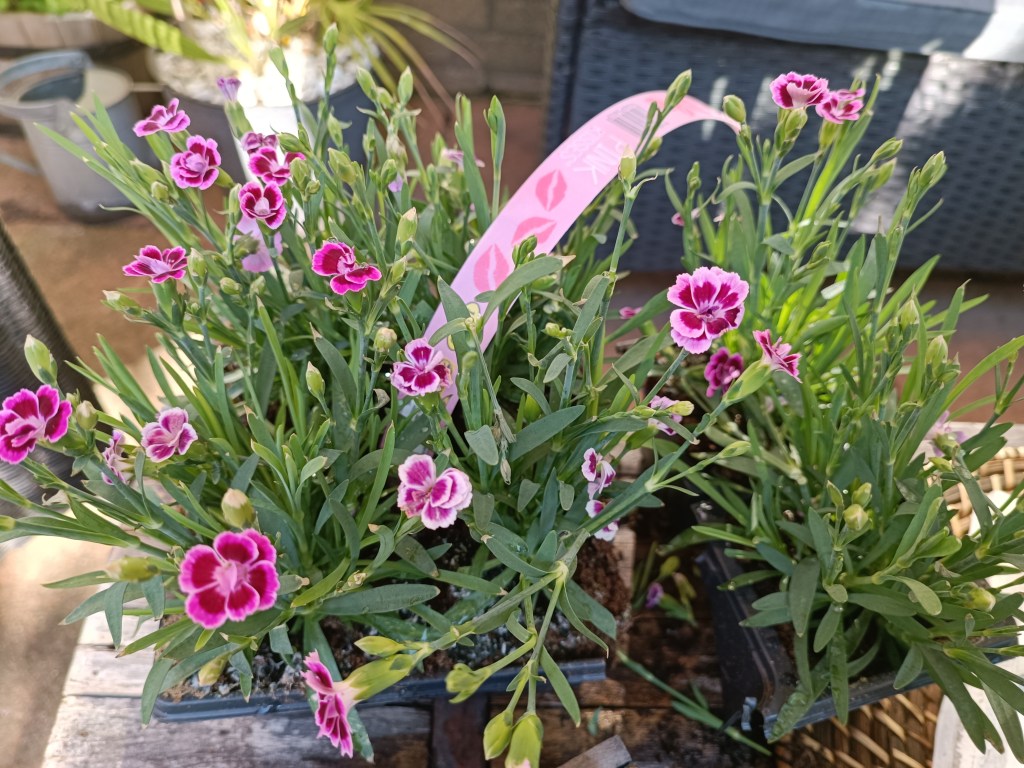 I moje ulubione goździki ogrodowe. Chyba mam na ich punkcie fioła 🤪 Są to naprawdę ładne roślinki. Ich zaletą jest też to, że bez problemu zimują w ogrodzie i na wiosnę wypuszczają nowe listki a potem kwitną. Dwie kępki mam w koszykach, pięć na rabacie i ostatnio w Lidlu dokupiłam kilka sztuk. Czekają na wsadzenie.