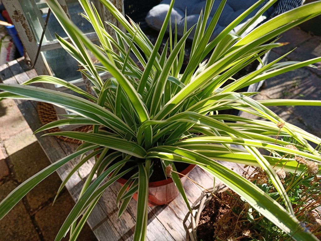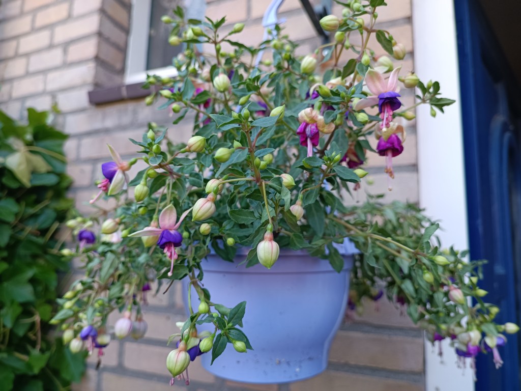 Pan Mąż w weekend skosił trawę, wyciął bambusa i spryskał randapem chwasty między kostką. Mnie zostało wyrwanie pojedynczych chwastów na klombie. Pogoda słoneczna. Grzeje pełną parą i co dzień wieczorem biegam z konewką i podlewam rośliny. Dobrze im to robi i odwdzięczają się ładnym wyglądem 🙂 Ostatnio sąsiadkom dałam pomidory i w zamian od każdej dostałam kwiatka 😁 Jeden, to zielistka. Miałam ją kiedyś w domu i padła. Sąsiadka powiedziała, żeby ją trzymać na zewnątrz. Zdziwiłam się, bo zawsze je widziałam w domach. Ale skoro wcześniej mi zdechła w środku, to teraz zobaczymy, jak będzie rosła na powietrzu. Margot mówiła, że będzie wypuszczała nowe ładne liście. Ona sama ma chyba trzy zielistki na tarasie i są naprawdę imponujące. Druga roślina, to fuksja w ładnym kolorze. Jedną mam z zeszłego roku, przetrwała i wypuściła liście. Tę sąsiadki powiesiłam przy drzwiach wejściowych w miejsce bratków, które już zrobiły się stare.