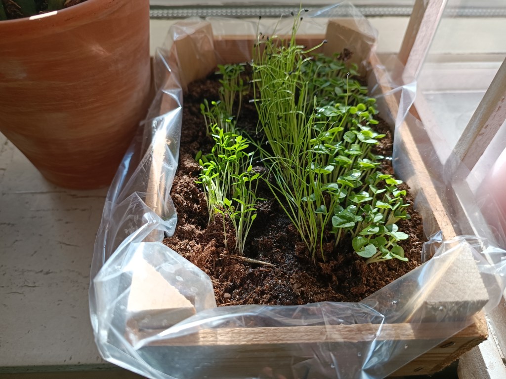 Muszę też wspomnieć o ziołach, które niedawno posiałam i trzymam na parapecie. Wyrosły zadziwiająco szybko. Z każdym dniem coraz większe. Jednak się udało 🙂