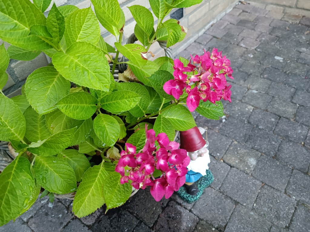Hortensje też dają radę. Mają te same kolory, co w zeszłym roku. Są dwie różowe i jedna niebieska. Dwie w ogrodzie i jedna przed domem przy drzwiach wejściowych. Pokrzywy ozdobne się przyjęły. Zdążyły się do nich dobrać ślimaki, ale wypędziłam je solą. Nie widzę ani jednego i odpukać, oby tak zostało. Wiem natomiast, że te rośliny nie lubią dużo wody, bo po prostu by zgniły.