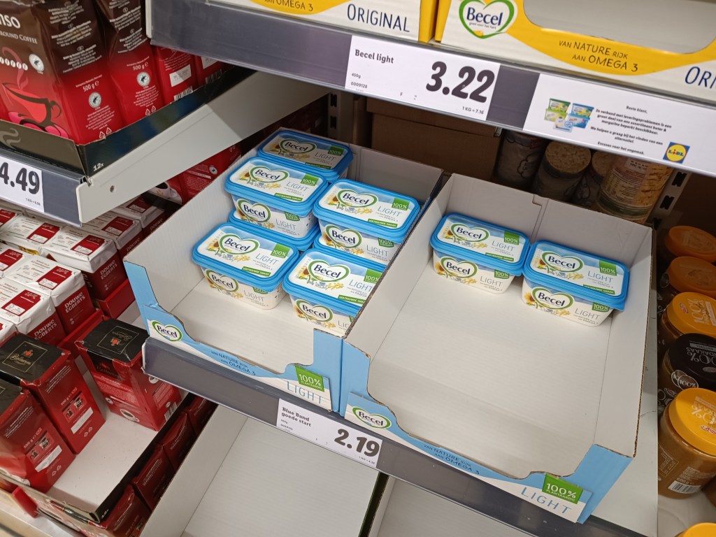 10. Masło. My kupujemy te w pudełkach. Panu Mężowi takie smakuje, ja jednak wolę kostkę. Koszt- 3,22€ szt. Razem: 6,44€. Co ciekawe, tutaj w kostce jest tańsze, niż to pudełkowe.