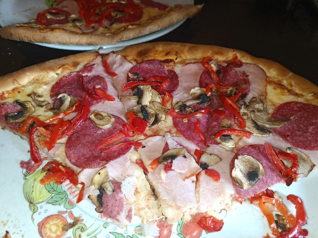 Odwiedziliśmy też ulubioną pizzerię. Objadłam się pizzy na zapas. Naszą ulubioną jest ta z serem, szynką i pieczarkami, ale tym razem spróbowaliśmy z dodatkiem papryki i salami. Sądzę, że pizze są jeszcze lepsze, bo zmienili grubość ciasta. To jest fajne, cieniutkie. Pycha!