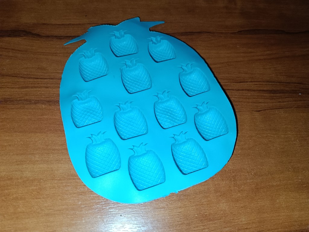Silikonowa foremka na kostki lodu. Już dawno chciałam kupić, ale wyleciało mi z głowy. Teraz natknęłam się na kilka różnych sztuk i wybrałam tę w kształcie ananasa.