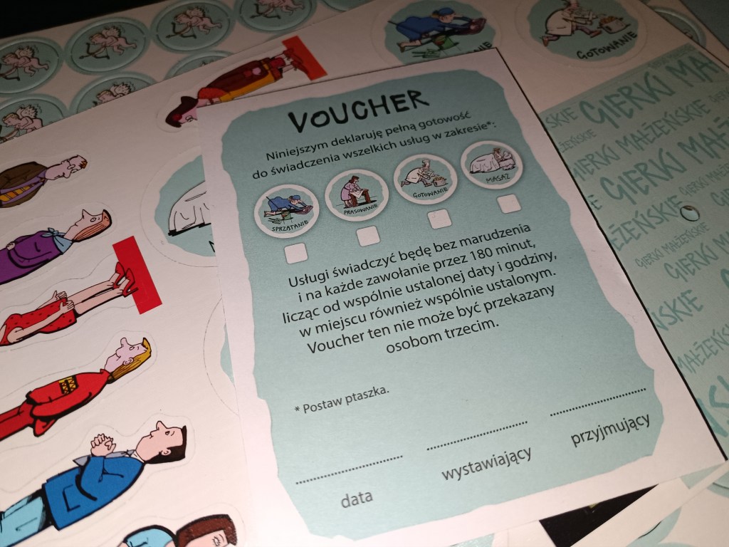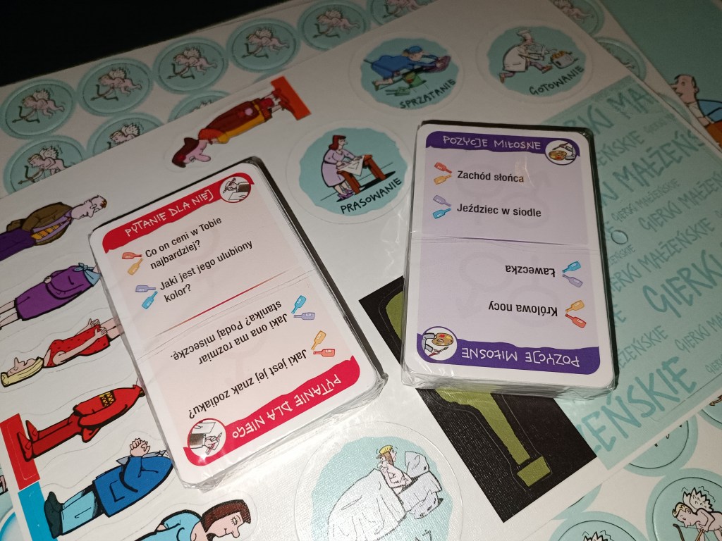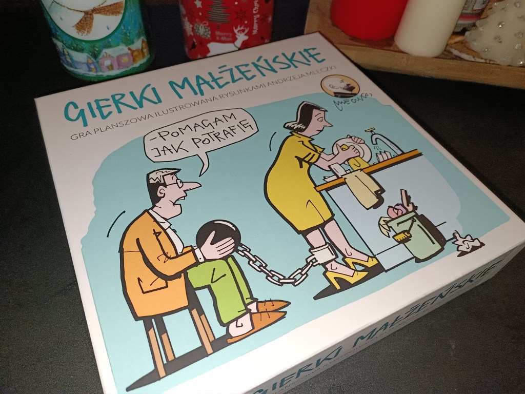 Pan Mąż przytargał do kasy „Gierki małżeńskie”. Gra z rysunkami Andrzeja Mleczki. Jedną już taką mamy- „Grunt to zdrowie”. W Gierki najlepiej się gra z innymi parami. Trzeba sprawdzić, czy z partnerem wiecie o sobie wszystko, czy tworzycie idealną parę, czy porozumiewanie się bez słów… Partnerzy sprawdzają się w rozmaitych zadaniach i porównują z innymi parami. Udowadniają sobie nawzajem, że są dla siebie stworzeni. Mnóstwo zadań i wyzwań, którym można stawić czoło we dwoje. Brzmi bardzo ciekawie.