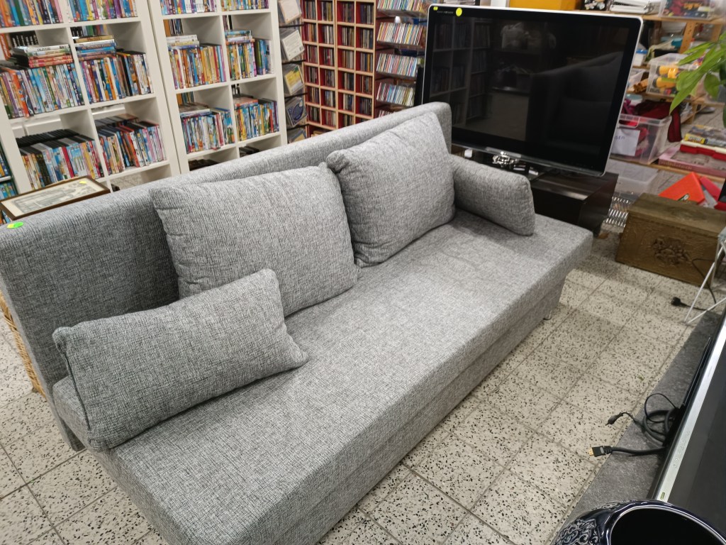 Mebli nowo dostarczonych też trochę było. Podobała mi się szczególnie szara kanapa i komplet: czarny stół plus krzesła.