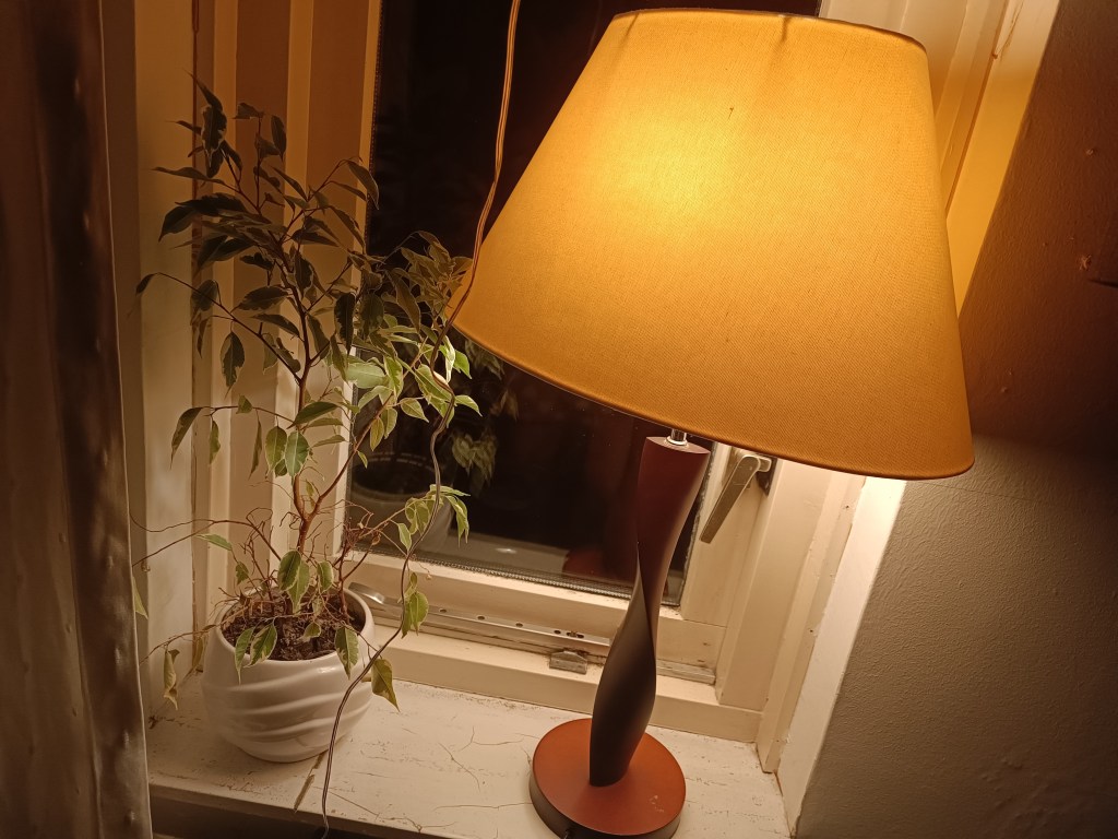 Jeansy były, a jakże. Różne modele i te z prawdziwego jeansu też. Ale co z tego, skoro nie było mojego rozmiaru. Koniec końców wyszłam bez spodni, ale jak zawsze nie z pustymi rękoma. Od razu w oczy- stała na wystawie- rzuciła mi się lampa. Nie należała do małych, z porządnym abażurem i z drewnianą nogą. Według mnie super. Zauważyłam, że Holendrzy bardzo lubią stawiać lampki na parapetach okien. Bardzo mi się to podoba, bo dom wydaje się wtedy przytulny. I ja też chciałam mieć lampę na parapecie w salonie. Ta jest idealna, bo daje przyjemne ciepło żółte światło.