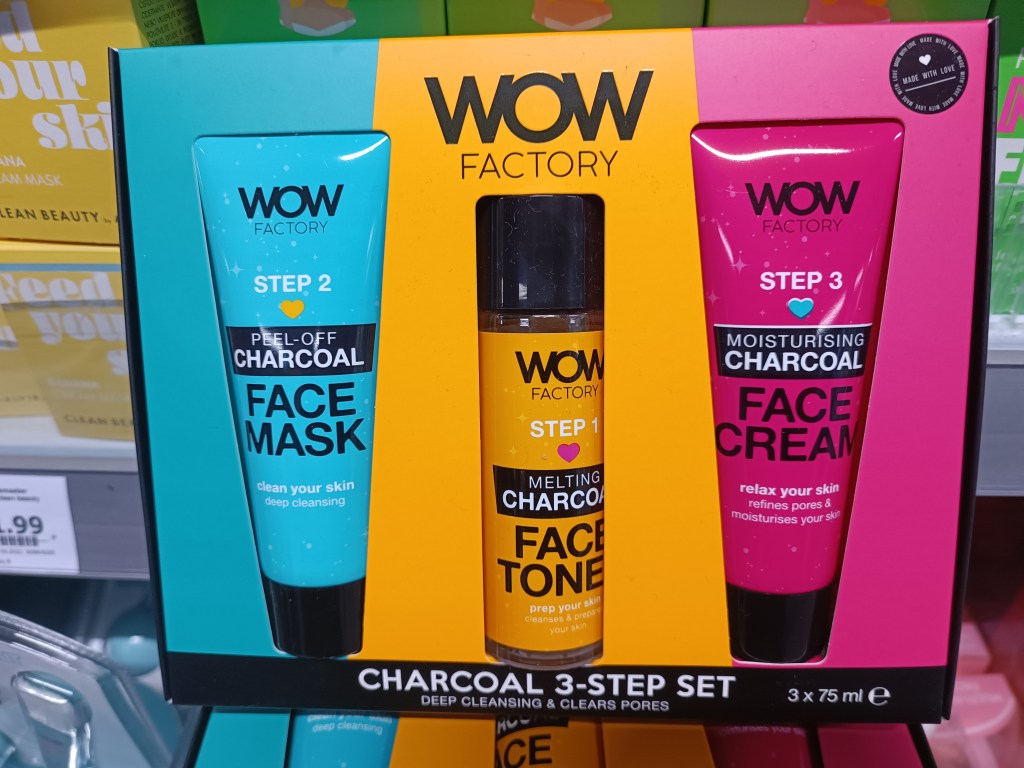 Jeśli chodzi o oczyszczanie twarzy, to wyszukałam taki kolorowy komplet, który składa się z trzech kosmetyków: toniku, który rozszerza pory, maski żelowej pell-off i kremu nawilżającego. Stosuję raz w tygodniu na strefę T, bo tu mi się twarz przetłuszcza. Ściąganie maski daje uczucie zrywania skóry 😀 Przykleja się to to mocno i mocno też trzyma. Mnie boli trochę, ale pory czyści.