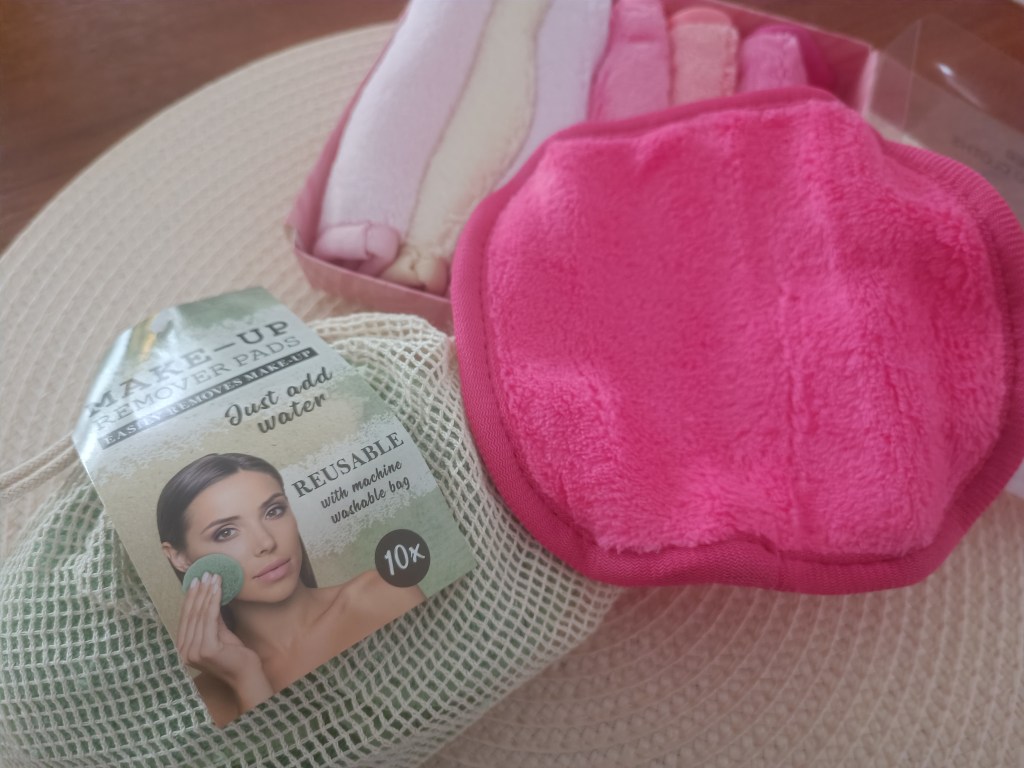 Próbuję zrezygnować z bawełnianych płatków kosmetycznych. Albo chociaż w połowie zrezygnować, bo maluję czasem paznokcie i muszę zmyć czymś lakier. Kupiłam opakowanie małych ręczników z mikrofibry w cukierkowych kolorach na cały tydzień. Producent obiecuje, że usuwają całkowicie makijaż bez użycia środków chemicznych. Kolejna rzecz, to 10 sztuk płatków kosmetycznych, wielorazowego użytku. Przed pierwszym użyciem należy je wyprać w dołączonym woreczku, ale bez płynu zmiękczającego.