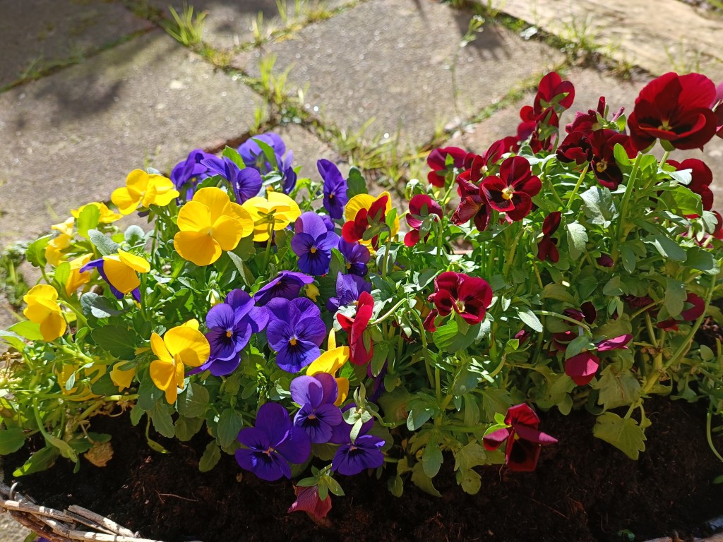 Część bratków i niezapominajki ostatecznie zostaną przeniesione przed drzwi wejściowe. Z tym, że najpierw trzeba zrobić porządek, czyli zgrabić suche liście, wyrwać chwasty, zamieść chodnik. W tej chwili piździ okrutnie, że łeb chcę urwać i co jakiś czas pada. Zresztą od tygodnia. Musiałam wszystko w ryzach trzymać, gdy przesadzałam bratki, bo wiatr przeszkadzał. Poczekamy do lepszej pogody.