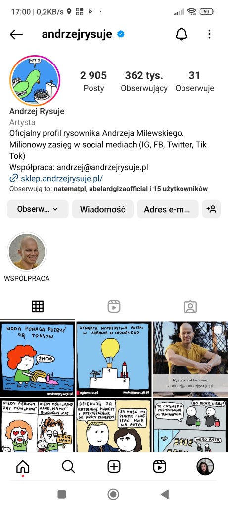 1. Zgodzę się z większością. Niektórzy mają tylko filmiki. Ja ich nie oglądam. Nie mam nawet włączonego dźwięku, bo oglądam insta jak „normalni ludzie” na kiblu i czasem na przerwie w pracy. Więc nie chce by było słychać mój telefon. Zwłaszcza że nigdy nie wiesz co ci ludzie głupiego powiedzą. Elabkraty pod zdjęciami też omijam. Obserwuję Adriana kostere i jego czasem przeczytam, choć widać już zmianę od kiedy jego konto prowadzi pracownik a nie on sam. Goliznę można na szczęście kliknąć i ustawić „nie interesuje mnie to” czy jakaś taka opcje. Wtedy pojawia się tego mniej.