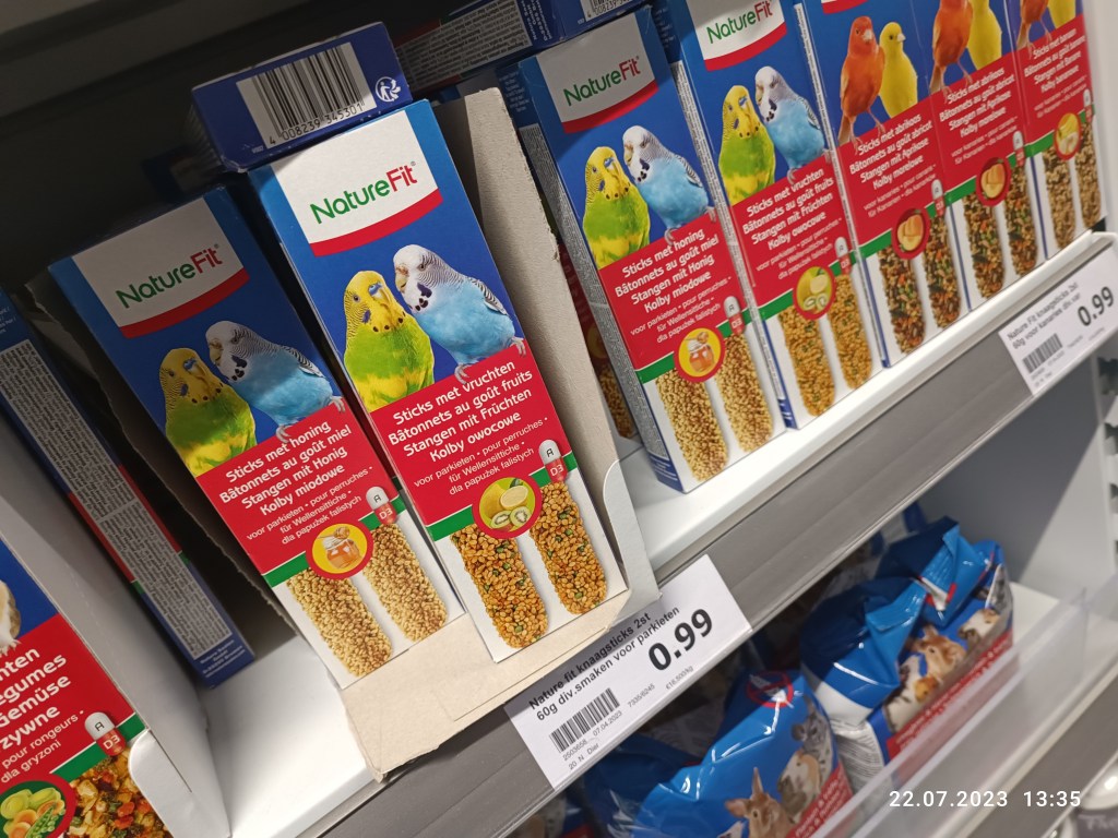 Co jeszcze kupujemy w Actionie? Np ziarno dla ptaków w postaci „batonów”. Nie muszę odwiedzać sklepu zoologicznego, bo przy okazji zakupów actionowych zaopatruję się w identyczne batony, które moje papugi uwielbiają.