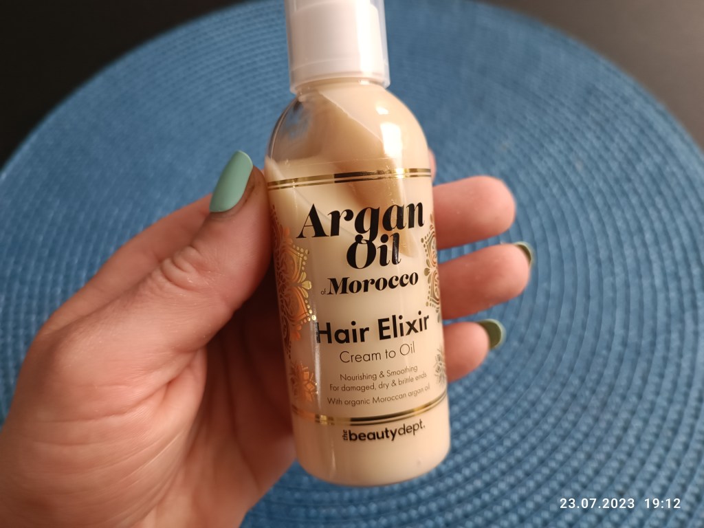 Kolejny kosmetyk do włosów – krem z olejkiem arganowym. Chyba nowość. Pasuje mi w nim to, że zmiękczy włosy i nie trzeba spłukiwać. Sprawdzimy i zobaczymy efekt 🙂