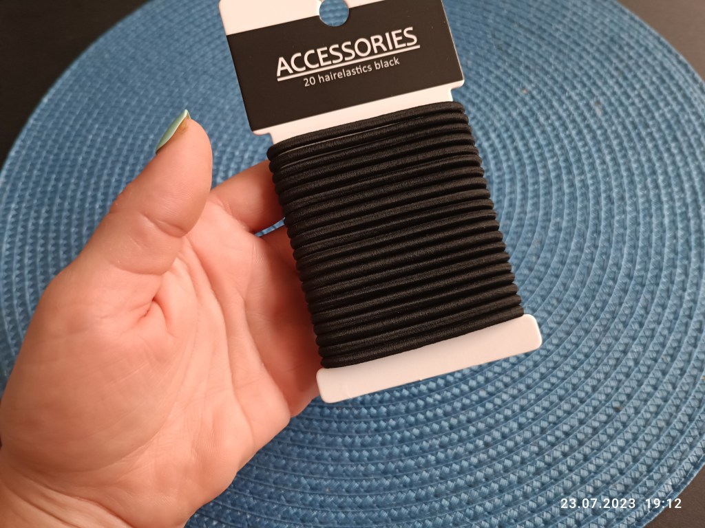 Gumki do włosów, ale będą mi raczej służyć do zapanowania nad wsuwkami, które leżą luzem. Włosy wiążę innymi gumkami, bo te by zniszczyły włosy.