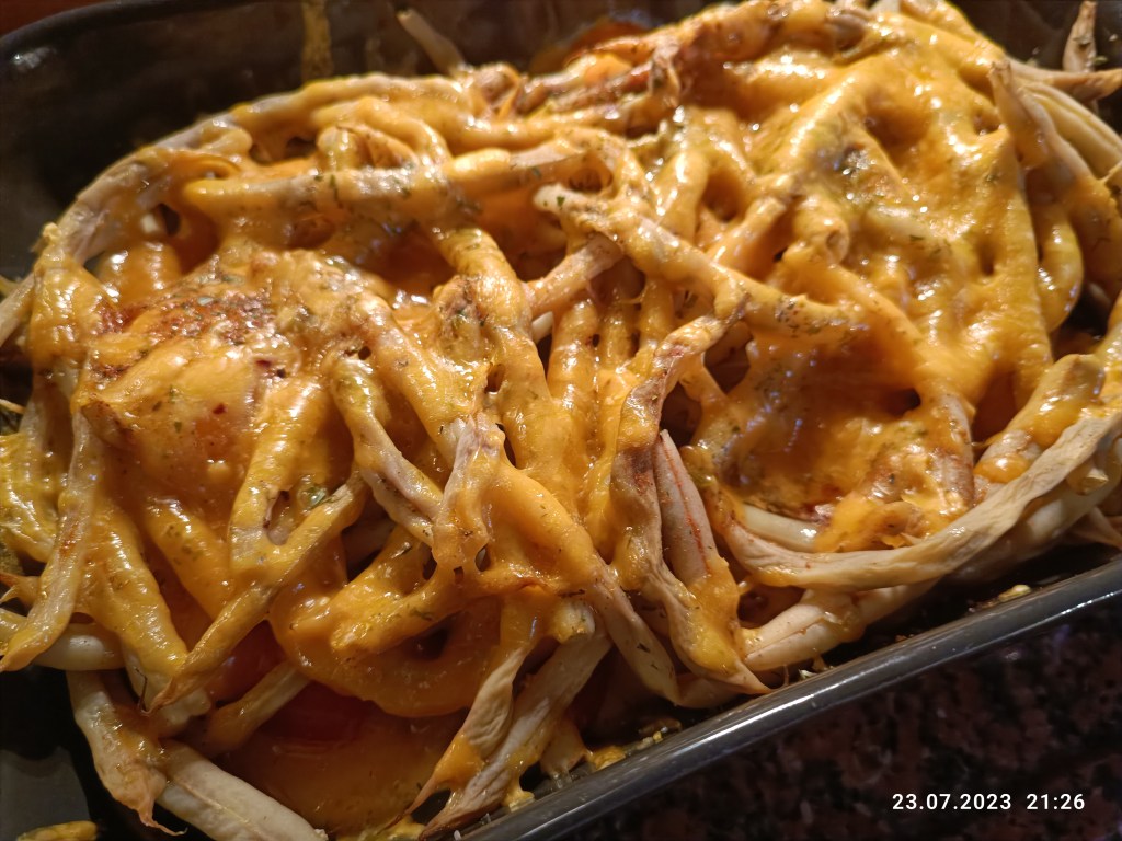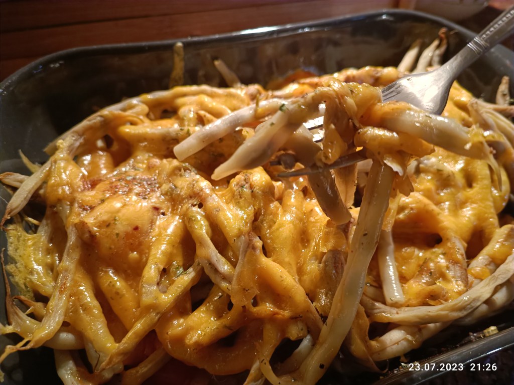 Zapiekałam to kilka minut (do stopienia sera) w 150°. Najlepiej smakuje na gorąco.