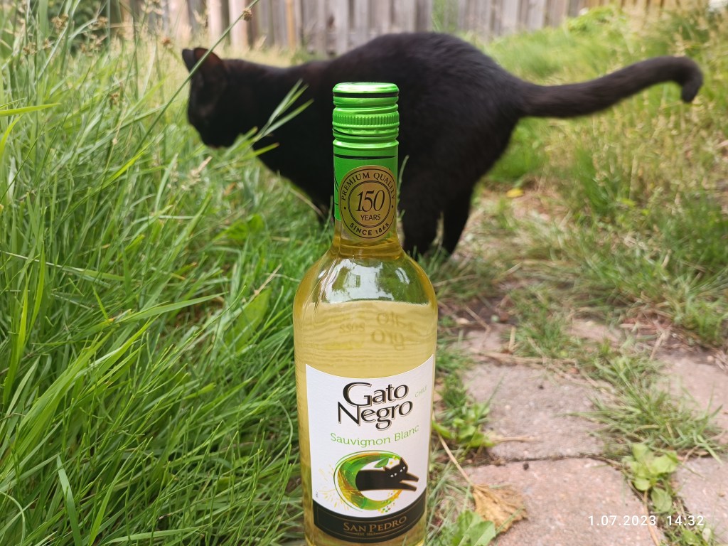 Znalazłam idealne dla mnie w smaku wino. Hiszpański Czarny Kot. Skalpel idealnie zapozował. Zresztą już z nami nie mieszka, bo brat z żoną wyprowadzili się do Rotterdamu. Znaleźli mieszkanie, wynajęli, poradzili sobie 🙂