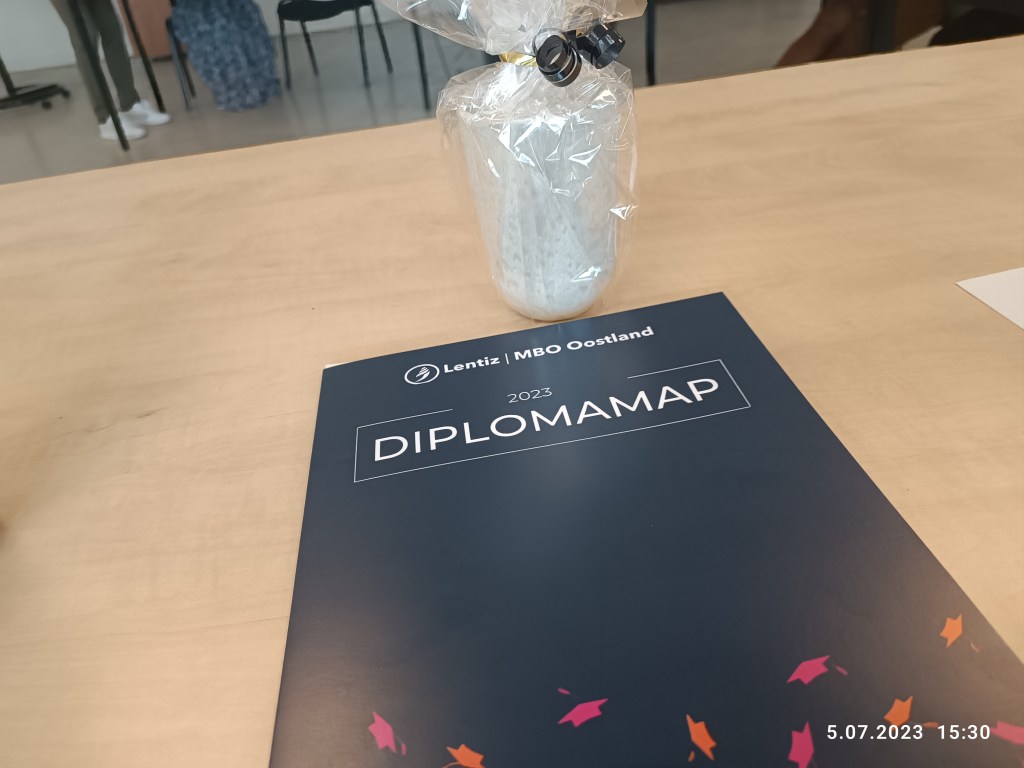 Jak już wcześniej pisałam, w maju odbyły się egzaminy w naszej językowej szkole. Rozdanie dyplomów było dopiero w lipcu. Wszyscy (nie, nie wszyscy, bo kilka osób miało urlop) stawiliśmy się w miejscu, gdzie chodziliśmy na lekcje. Była kawa, soki, owoce, nauczyciele i fotograf, który robił każdemu zdjęcie dla strony internetowej szkoły. Podpisaliśmy dyplomy a oprócz tego mały prezent w postaci świecy o delikatnym, kremowym zapachu.