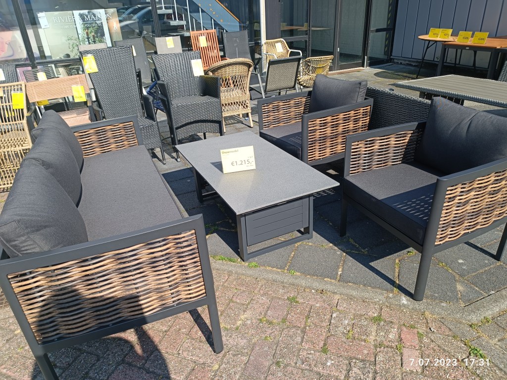 Do Jyska rzadko zaglądam. Byliśmy akurat w Actionie i obok jest Jysk. Na zewnątrz wystawiony był komplet ogrodowy, który według mnie jest naprawdę fajny. Niżej stół (niestety bez krzeseł) w kringloopie za 130€