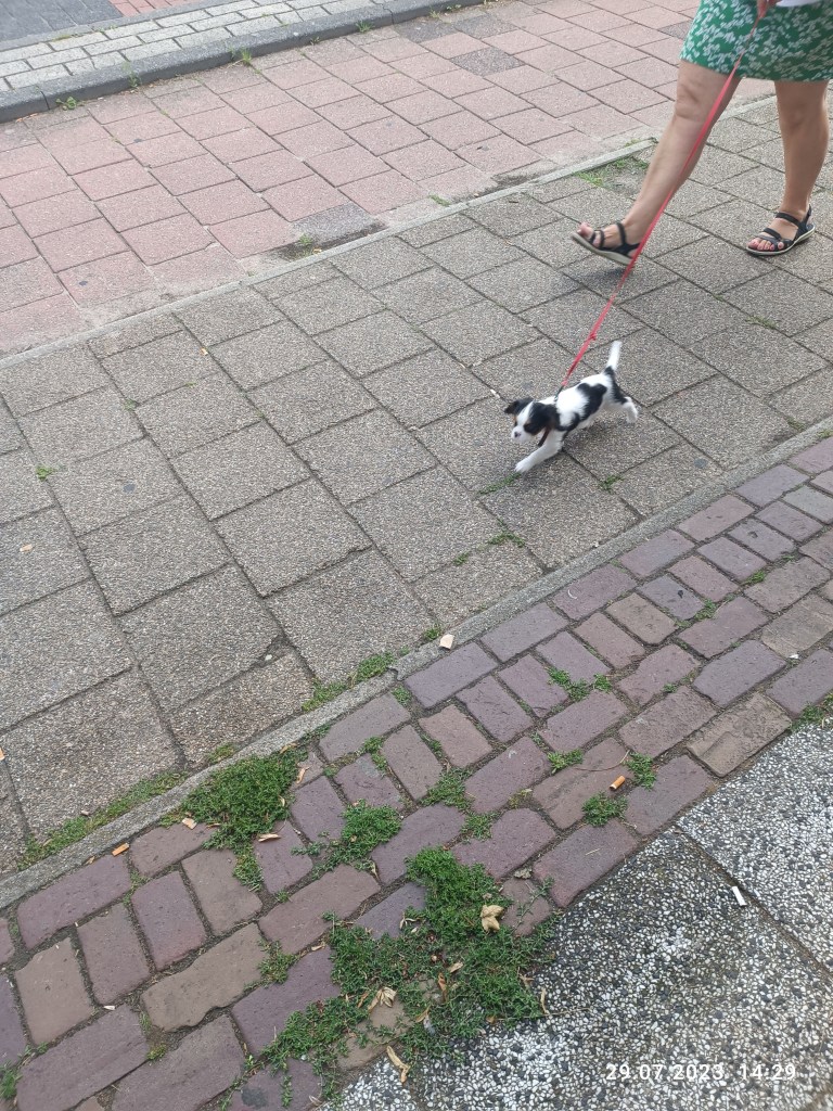 Kolejny szczeniaczek, który uczy się grzecznie chodzić „przy nodze”
