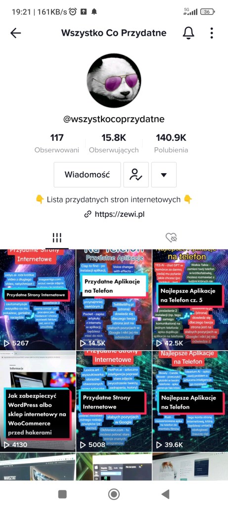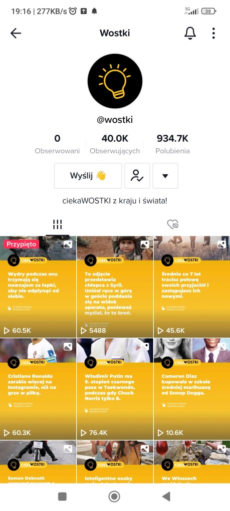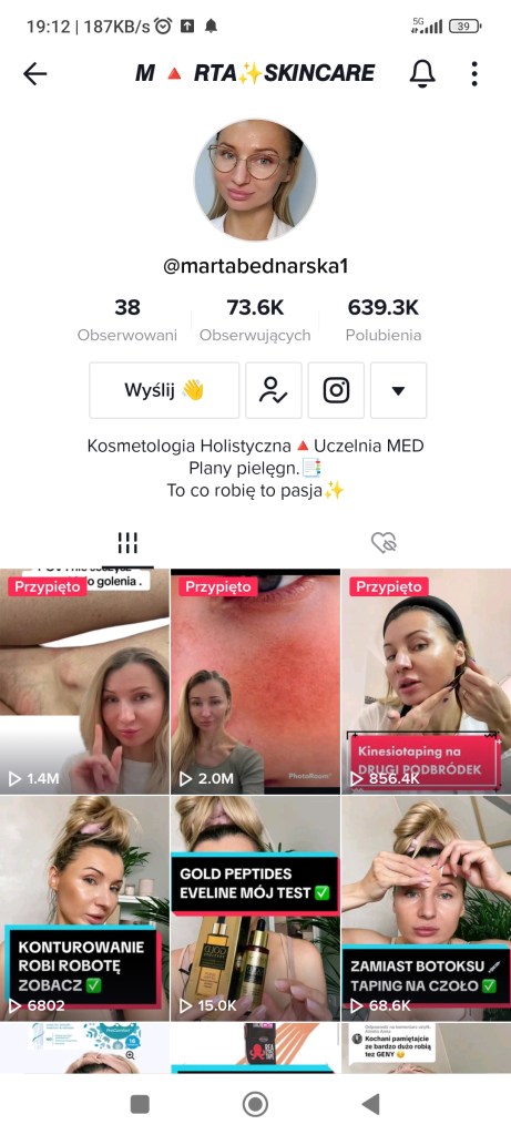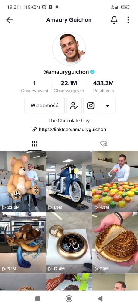 Oglądam filmiki na TikToku codziennie. Każdego dnia dowiaduję się też nowych rzeczy, bo ta aplikacja służy nie tylko do pokazywania głupot. Konta tu mają ludzie, którzy zajmują się ciekawymi rzeczami: od tych, co uczą języków, przez masażystów pokazujących techniki masażu, po kosmetologów i make- up. Żeby nie było, że tylko żyję TikTokiem. Przeglądam go jedząc śniadanie lub na przerwach w pracy. Czasem wieczorem. Mam inne hobby 🙂