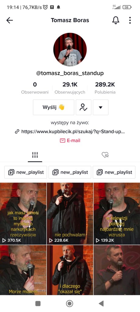 Lubię polski stand-up. Mam ulubionych artystów a moim ostatnim odkryciem jest ten pan. Czarny humor i ironia leją się z ekranu. Boki można zrywać dodając do tego kamienną twarz Tomasza.