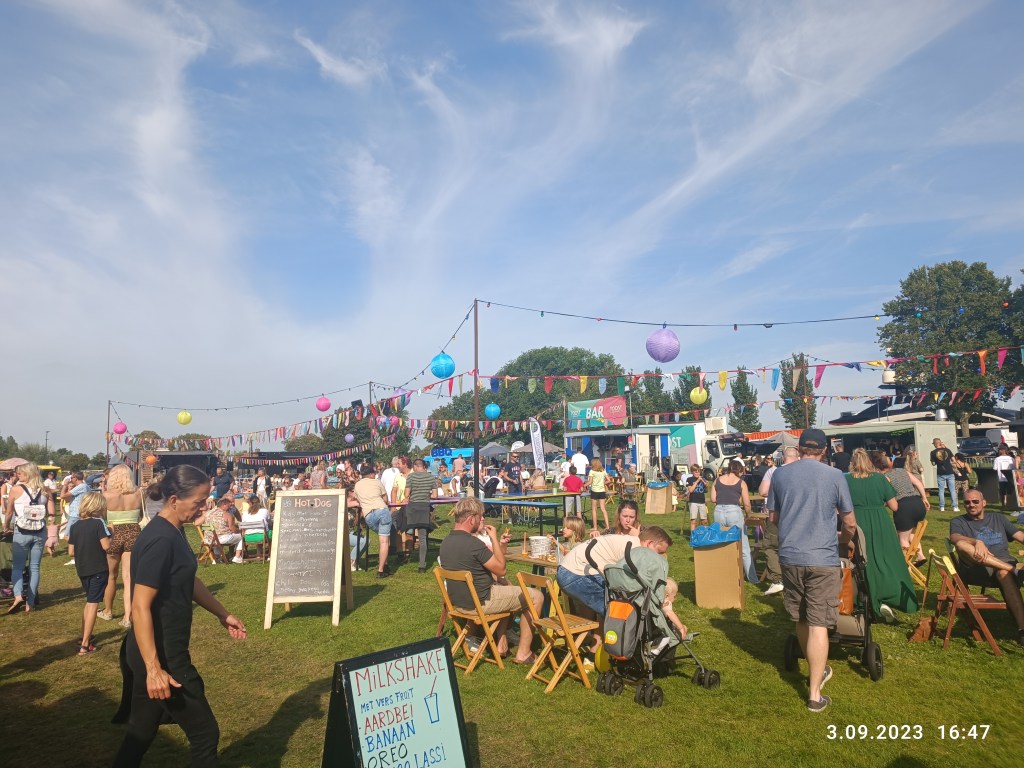 Na początku miesiąca w naszym mieście odbył się Food Truck Festival. Pojechaliśmy z Panem Mężem zobaczyć, co tam ciekawego można było zjeść. Nie było jedzenia z różnych stron świata. To był raczej typowy fast food: hamburgery, pizza, frytki… Oczywiście nie mogło zabraknąć piwa i kawy. Zamówiliśmy chickenburgera, który okazał się naprawdę dobry. A że było gorąco, to bez dwóch zimnych piw się nie obyło. Atmosfera fajna, dużo ludzi siedzących albo stojących przy stolikach, dwa stoły do ping- ponga, kącik dla dzieciarni i muzyka z głośników.