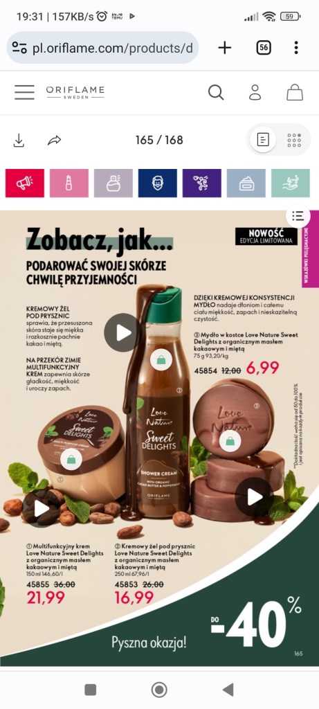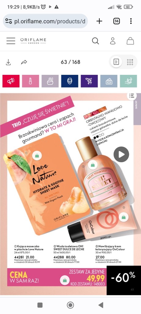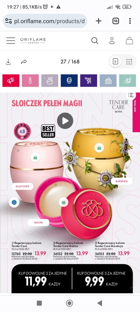Do tej pory korzystałam z Avonu, gdzie katalogi polskie były zazwyczaj dostępne w polskim sklepie. Z holenderskich jeszcze nie korzystałam a szkoda, bo nie ukrywajmy – Avon jest bardziej popularny i ma przystępne ceny. W Oriflame znalazłam kilka ciekawych kosmetyków, ale postanowiłam też przyjrzeć się cenom. Ja wiem, że nie ma tu co porównywać i przeliczać na złotówki, ale postanowiłam to zrobić. Dlatego też wzięłam na tapetę te popularne produkty i kilka nowości. Weszłam na polską stronę firmy, zrobiłam screeny i również zdjęcia holenderskiego katalogu.