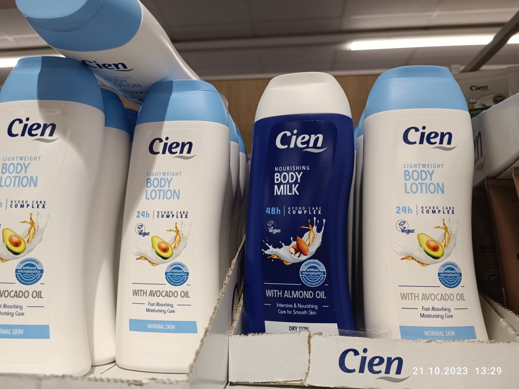 Trochę czasu minęło zanim przekonałam się do tej marki. Mieszkając w Polsce, bardzo rzadko coś z niej kupowałam. Teraz, może trochę z oszczędności i trochę z lenistwa, bardzo często sięgam po Cien. Nie od dziś wiadomo, że produkty niemieckie są dobrej jakości i nie tak bardzo drogie w marketach. Do tego dochodzi fakt, że nie biegam po drogeriach, bo po prostu nie lubię, nie chce mi się i nie mam czasu. Od tego mam internet i supermarket. No i wreszcie przyszedł kiedyś moment, że musiałam w Lidlu kupić np szampon do włosów, zmywacz do paznokci, czy płyn do płukania ust. Teraz już mam swoje ulubione produkty, których na pewno długo albo i wcale nie zamienię na żadne inne. Odpowiadają mi na 100%.