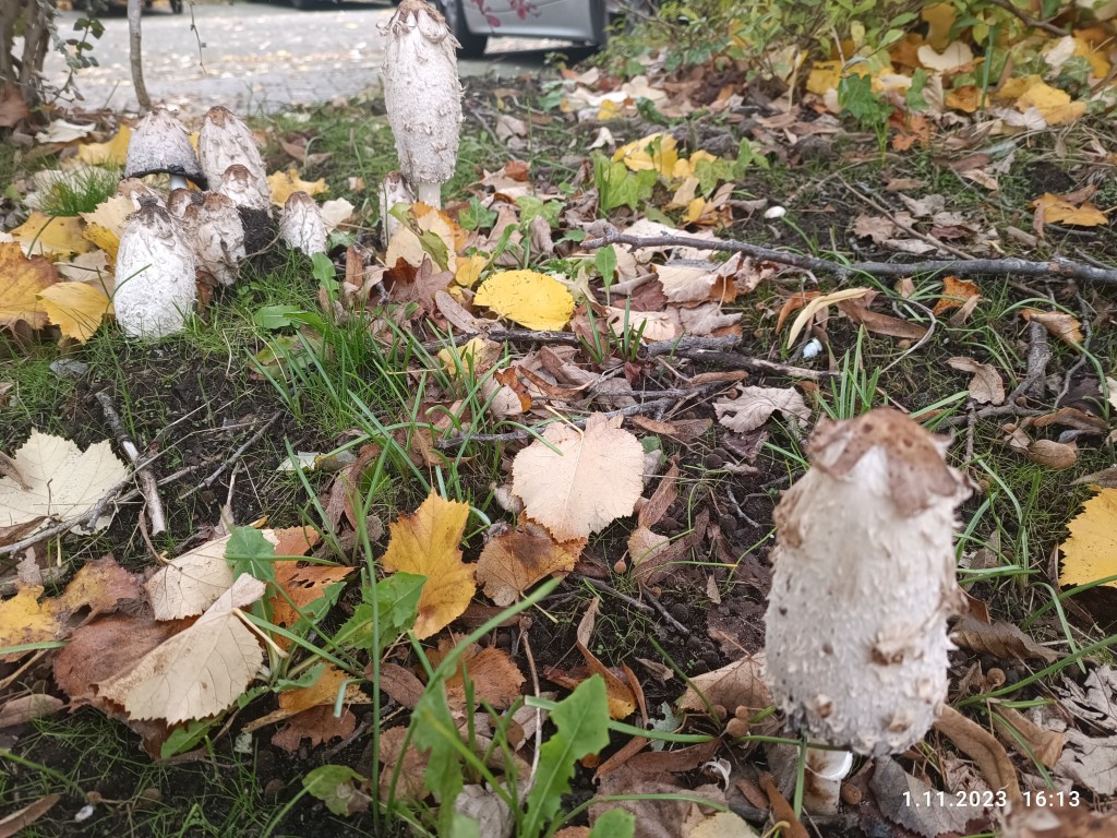 Na Facebooku należę do grupy: „Grzyby w Holandii”. Tutaj można nazbierać legalnie tylko ilość odpowiadającą opakowaniu pieczarek w sklepie. To jest chyba z 500 gram. Większa ilość grozi mandatem. A że grzybobranie to narodowy sport Polaków, to radzą sobie i tutaj. Chodzą po lasach, parkach i zbierają te grzyby. Wrzucają potem zdjęcia na tę grupę, aby pochwalić się zbiorami i polecają sobie miejscówki. Z jednej strony ja ich rozumiem, bo uwielbiam zbierać grzyby i żal mi dupę ściska, że nie mam tej możliwości a z drugiej strony, bym się chyba bała, że ktoś mnie przydybie i mandat będzie. Niektórzy są odważni. U mnie na osiedlu znalazłam tylko kilka takich okazów: