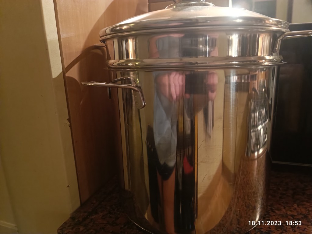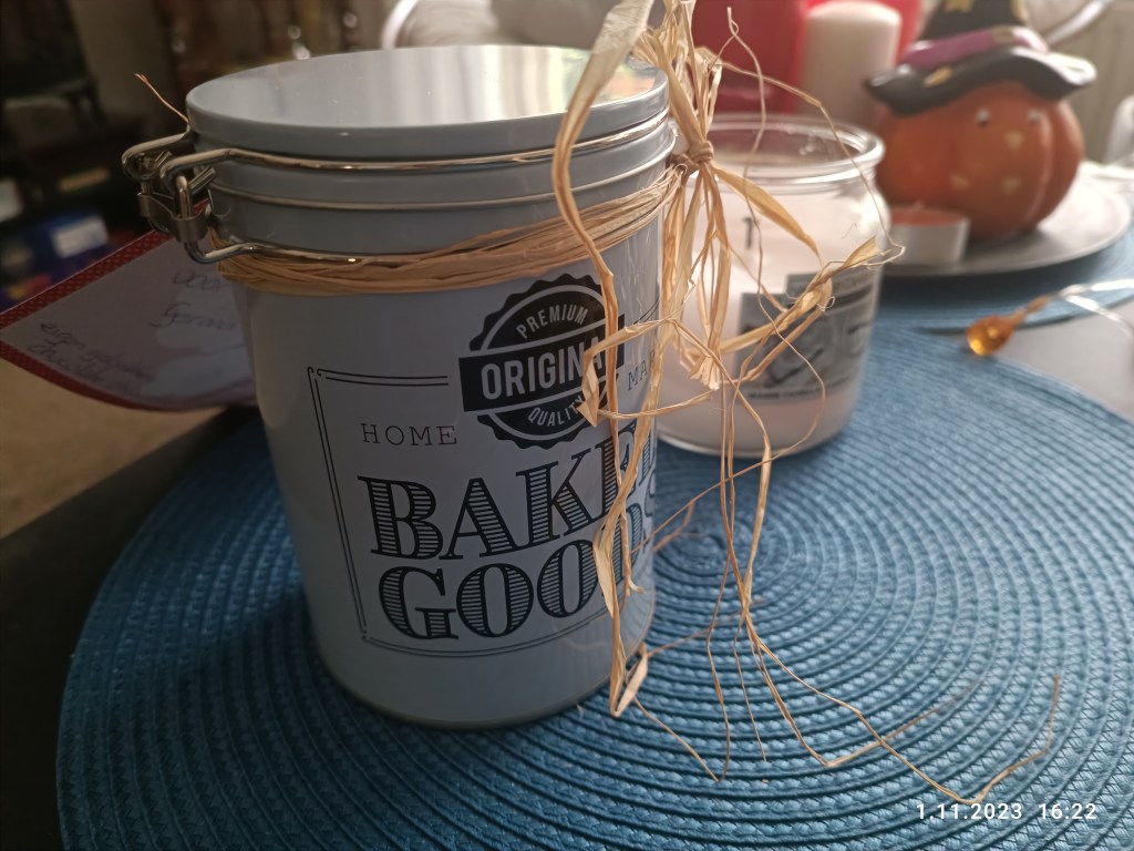 W listopadzie roznosiłam sąsiadom ostatnie skrzynki pomidorów. Nie obyło się z ich strony małych prezentów w podziękowaniu. Od Margot dostaliśmy puszkę domowej roboty ciasteczek a od Margo (one naprawdę niemal identycznie mają na imię 🙂) specjalny garnek do gotowania spaghetti. Nowy, nieużywany, ale jej niepotrzebny.