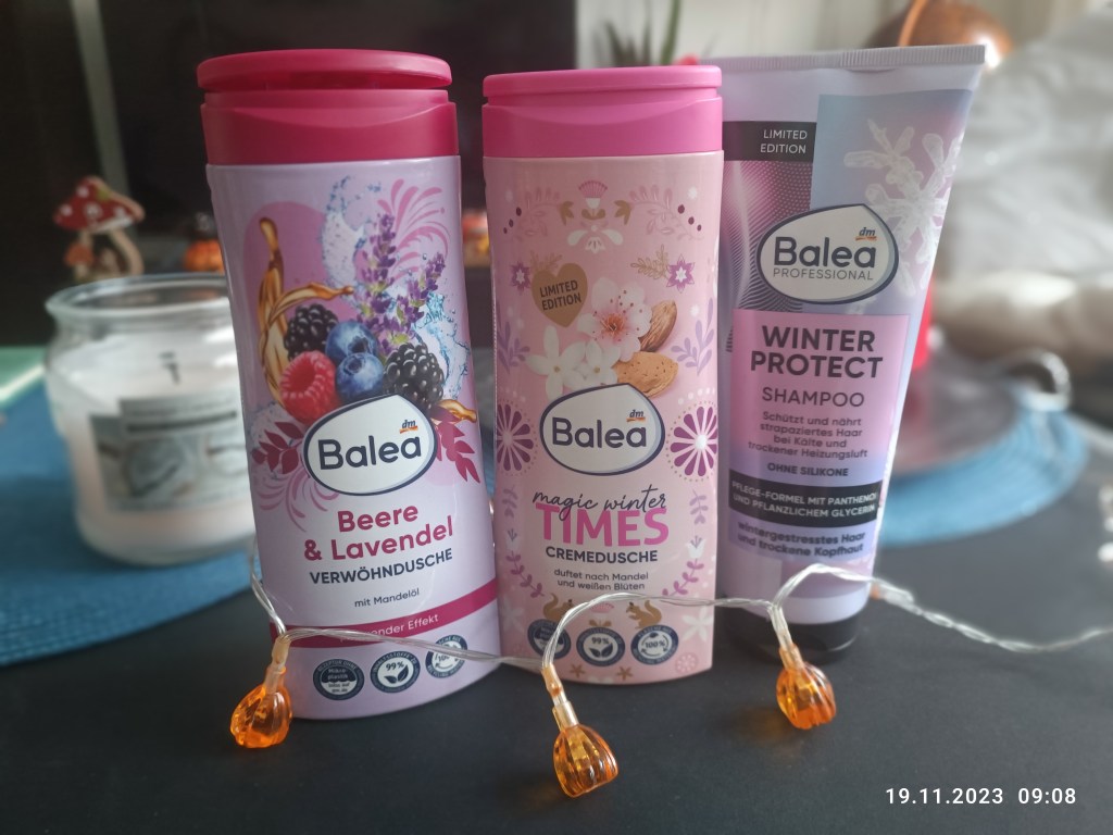 Wysłałam kilka zdjęć sąsiadce – Margo. Odpisała, że Aralia jest droga, więc poleca jechać do Niemiec. Tam są też fajne centra ogrodnicze, a przy okazji można zrobić dobre i tańsze zakupy, np w Kauflandzie albo drogerii DM. Odpisałam jej, że mam w planach, bo myślimy nad jarmarkiem świątecznym w Maastricht i ogólnie o zwiedzeniu tego miasta, albo Aachen. I chciałabym obkupić się w chemię niemiecką i kosmetyki firmy Balea. Nie minęło pół godziny, gdy sąsiadka przyszła i przyniosła mi dwa żele pod prysznic i szampon tej marki 🙂