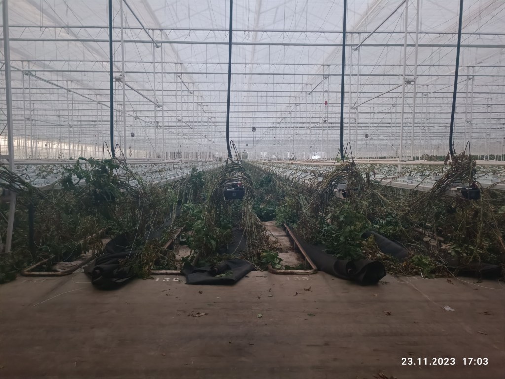 W pracy była już końcówka przed likwidacją starej uprawy i czyszczeniem szklarni. Trzeba było wyciąć wszystkie pomidory, więc na magazynie robota szła pełną parą. Należało przesortować i zważyć dobre warzywa a uszkodzone i stare wyrzucić. Planty były od góry obcięte i powoli więdły.