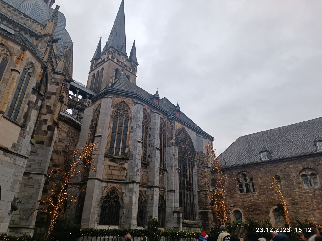 Mimo, że nie interesują mnie miejsca jako takiego kultu religijnego, to lubię podziwiać je ze względu na wygląd. Robią wrażenie. Katedrę w Aachen znałam ze zdjęć w internetach. Chciałam skorzystać z okazji i zobaczyć ją na własne oczy. Katedra w 1978roku została wpisana na światową listę Dziedzictwa UNESCO. Przez 600 lat była miejscem koronacji 30 władców. Mieści się z trzech części i jest miejscem spoczynku Karola Wielkiego, który był cesarzem rzymskim i zmarł właśnie w Akwizgranie.