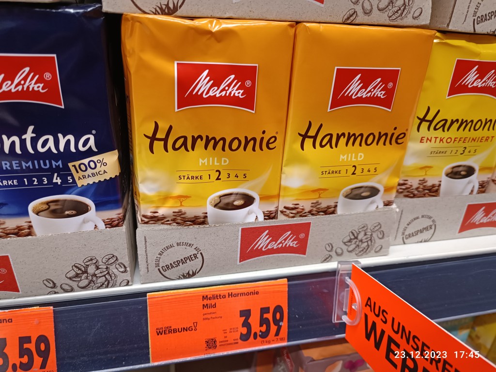 Mnie interesowała kawa. Kupiłam jedno duże opakowanie. Aktualnie pijemy tę z Lidla. Gdy skończymy, to otworzymy niemiecką. Z wędlin kupiłam opakowanie kiełbasek.