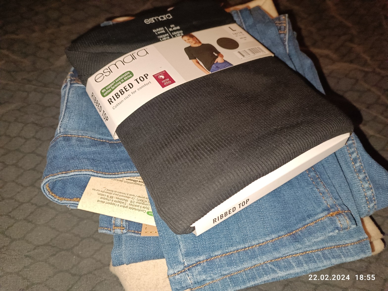 Za to ostatnio wyszłam ze sklepu z trzema sztukami ubrań. Rozmiary i kolory mi odpowiadały. Pierwszy ciuch, to czarny, prosty t-shirt z rękawami niemal do łokci. Kosztował 4,99€. Mam już dwa takie podobne i nosi się dobrze. Pasują i do spodni dresowych, do jeansów i spódnicy.
