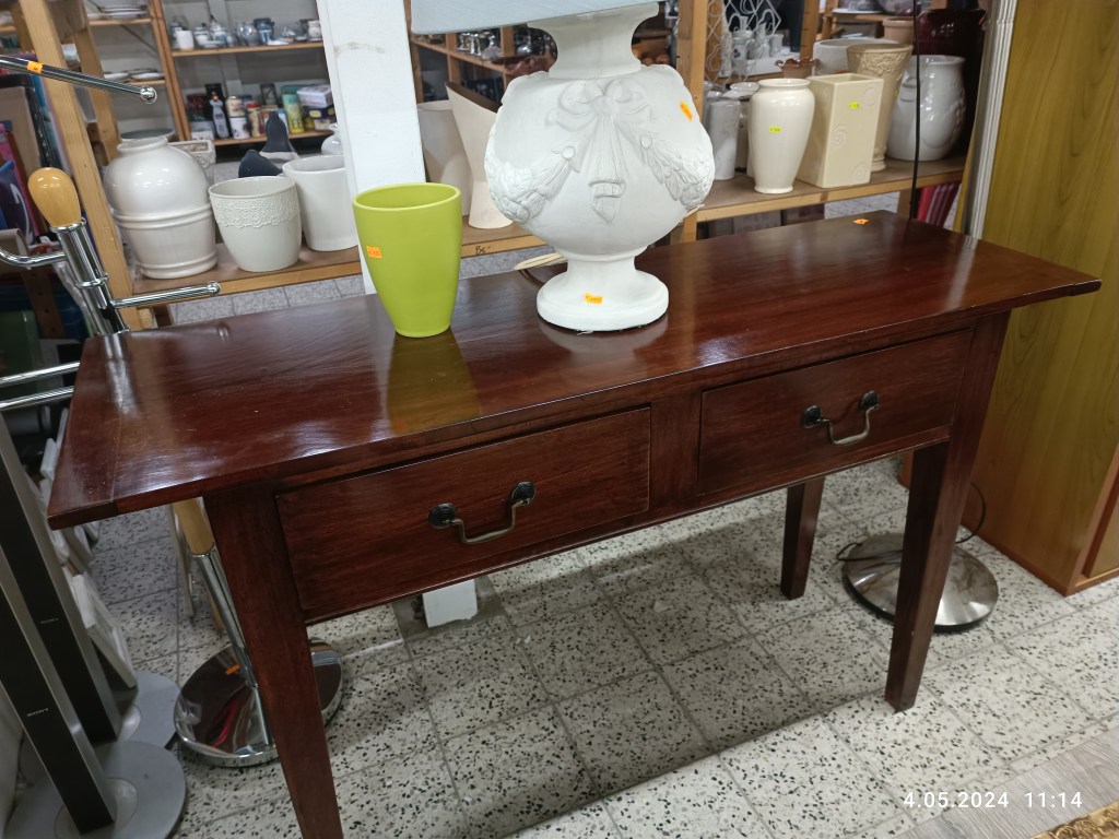Nowych mebli też było sporo. Podobała mi się np ta kanapa. Będziemy niebawem wymieniać starą, z tym że szukamy z funkcją spania. Ta w kringloopie jest jednak za duża, no i bez tej funkcji. Ten stolik też wpadł mi w oko: