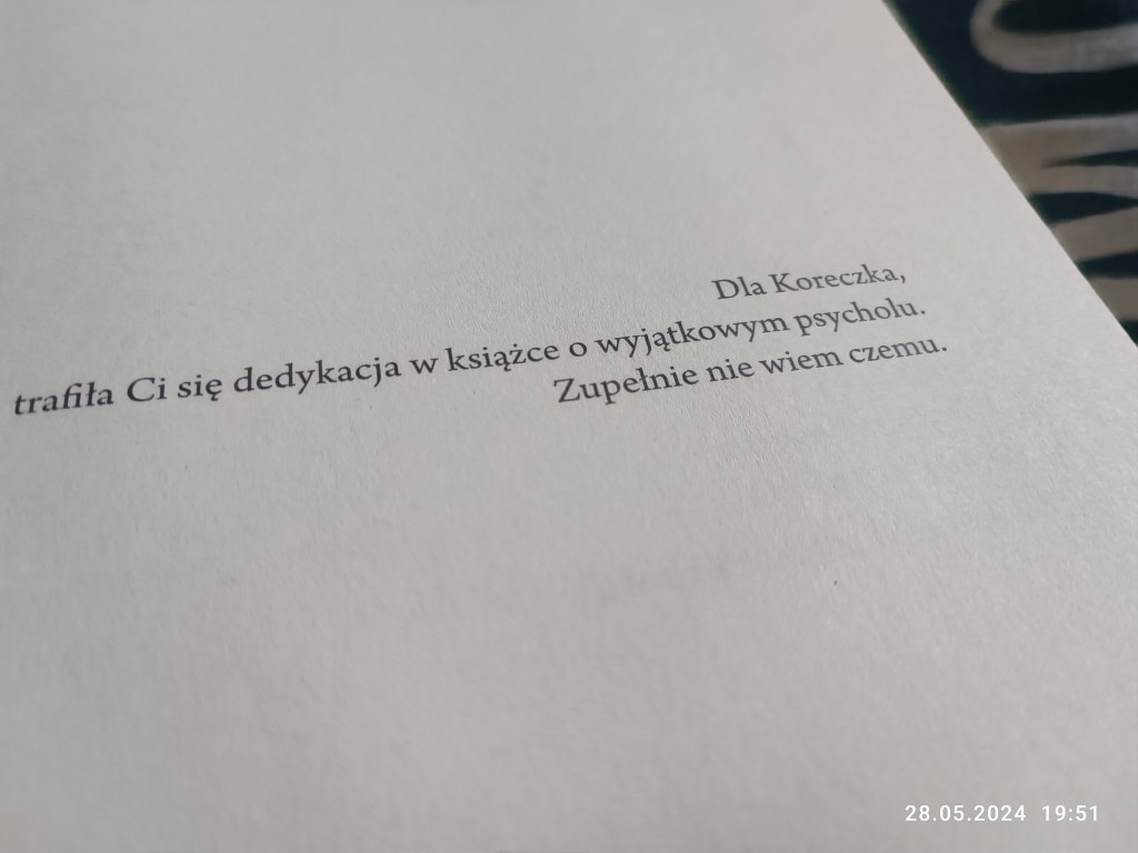 Książka wciąga. Cały czas coś się dzieje. Uprzedzam, że jest napisana dosadnie. Dużo wulgaryzmów i opisów koszmaru. Langer jest jednym z tych bohaterów, których polubiłam, mimo że to totalny zwyrodnialec. Więcej nic nie napiszę. Fan kryminału i mrocznego thrillera powinien przeczytać 🙂