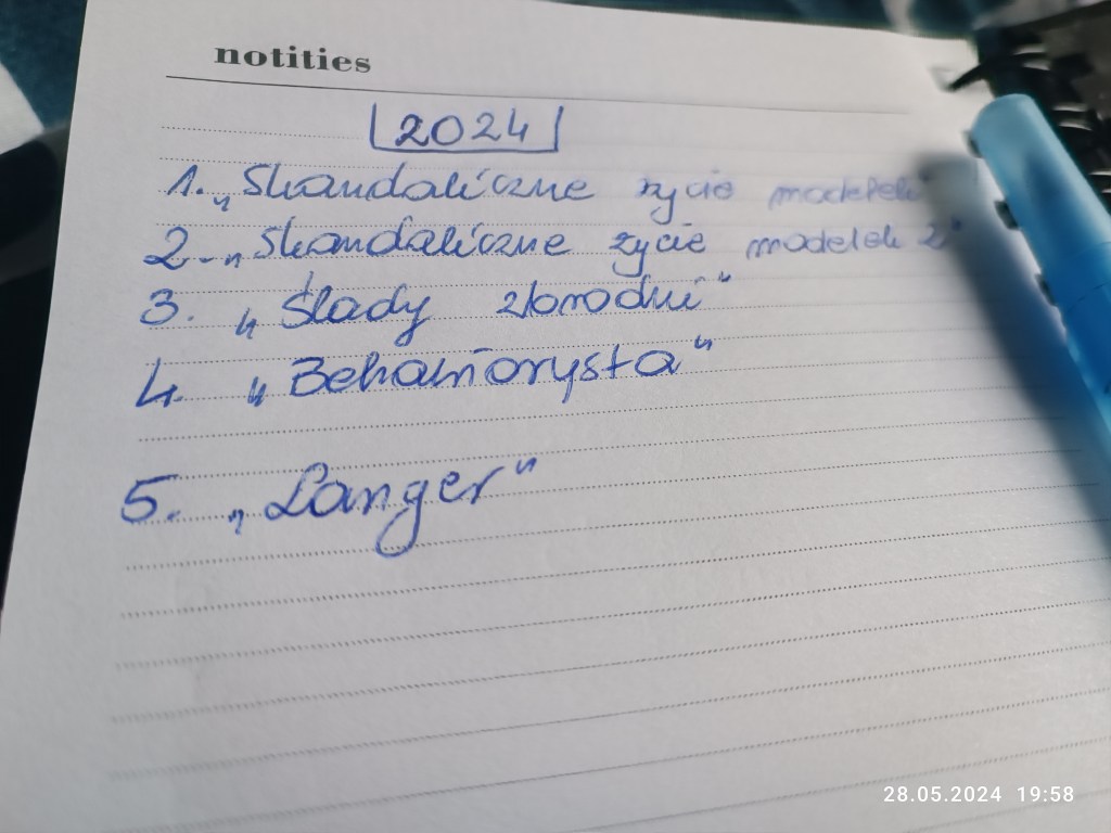 A tak na marginesie, to zajrzałam do mojego notesu, w którym zapisuję przeczytane książki. W tym roku szału nie ma, chociaż robię co mogę.