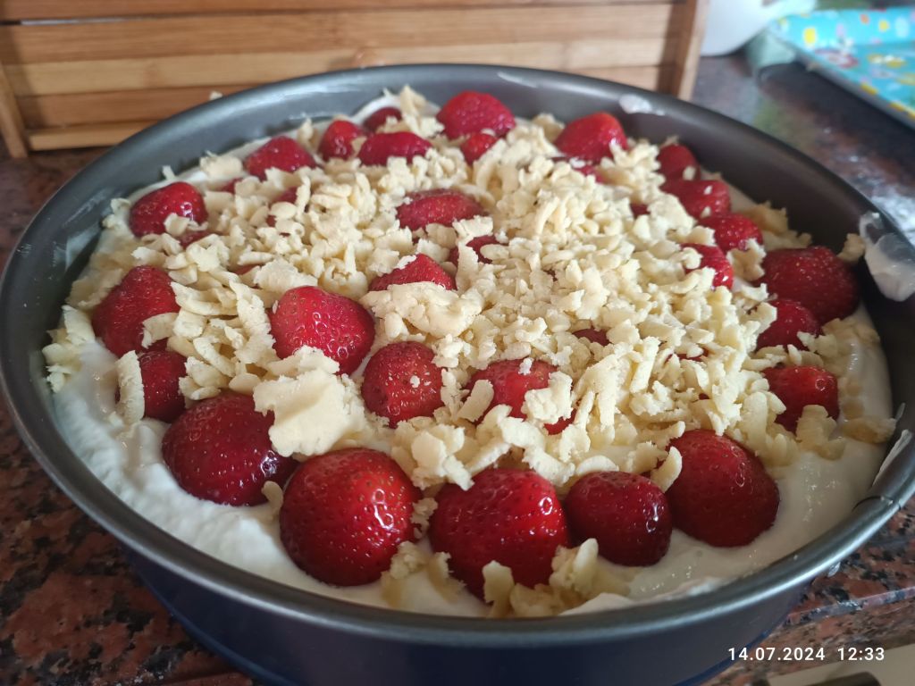 Zacznę od początku. Lubię czytać bloga Kasi Tusk. I tam zobaczyłam przepis na letnie ciasto z truskawkami. Wydawał się banalnie prosty. Do tego kruchy spód, który uwielbiam. Ja i mój piekarnik za sobą nie przepadamy. Dodatkowo nie posiadam brytfanek (oprócz jakiejś mini keksówki) do ciast, nie mówiąc o czymś tak „luksusowym”, jak tortownica. Ale uparłam się: w weekend upiekę ten sernik z truskawkami, mimo, że te owoce jem bardzo rzadko. Sklepowe, to nie to samo, co wyhodowane we własnym ogrodzie.