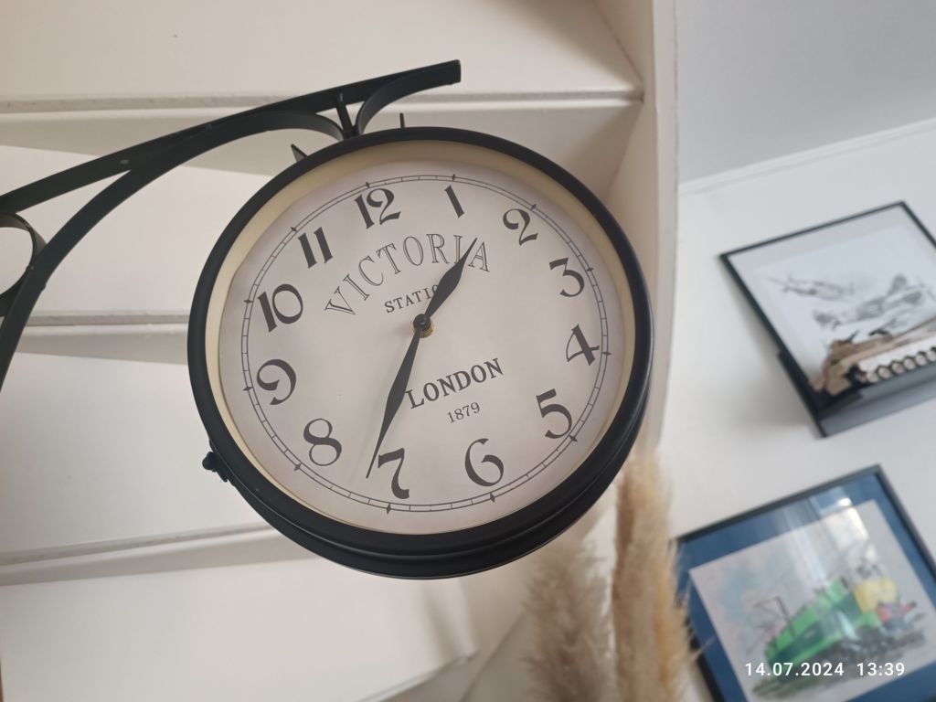 Przy zegarach zatrzymałam się na dłużej, bo mam na ich punkcie małego bzika. W domu posiadam kilka sztuk, które muszą „tykać”- ten dźwięk mnie uspokaja i przy nim zasypiam. Do kolekcji brakowało mi „stationsklok” , czyli zegara, jak z dworca kolejowego. I był! Za 7€! Nie mogłam go po prostu olać. Zapakowałam do koszyka i już wisi przy drzwiach do salonu.