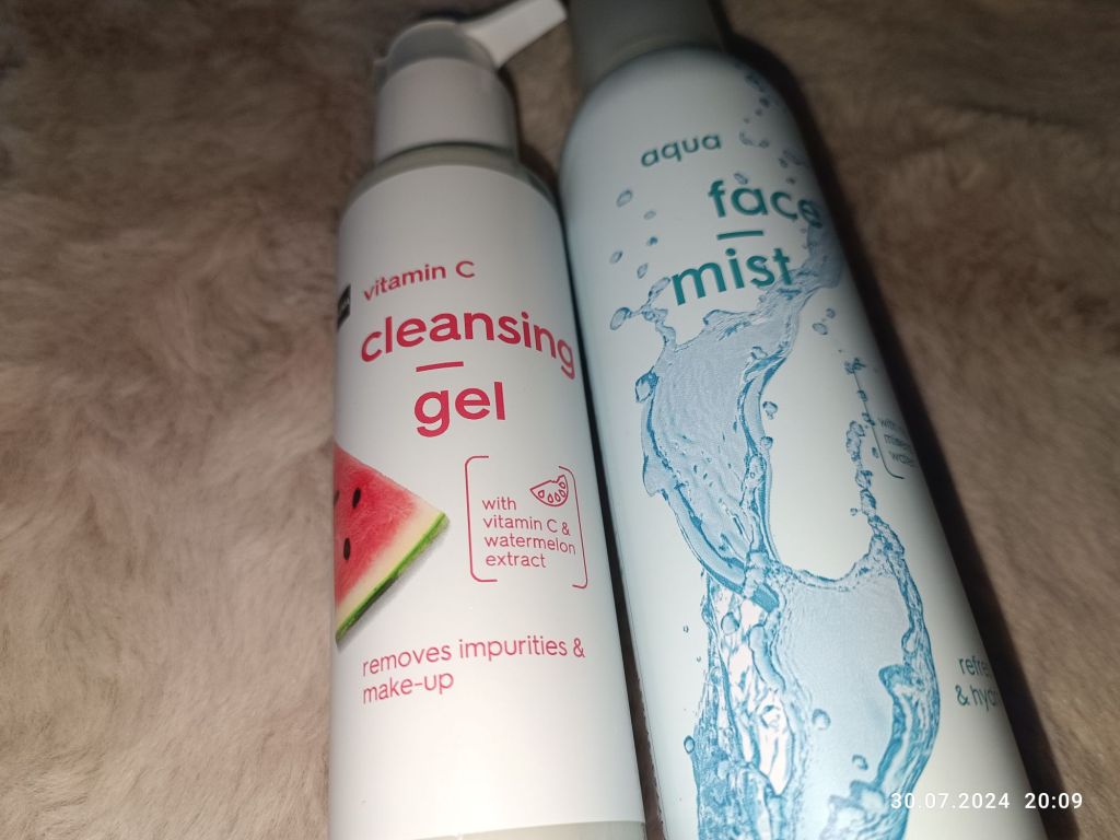 W Hemie kupiłam żel oczyszczający arbuzowy. Jeszcze nie używałam, najpierw skończę opakowanie żelu z Ziaji. Obok kolejna mgiełka – woda termalna.