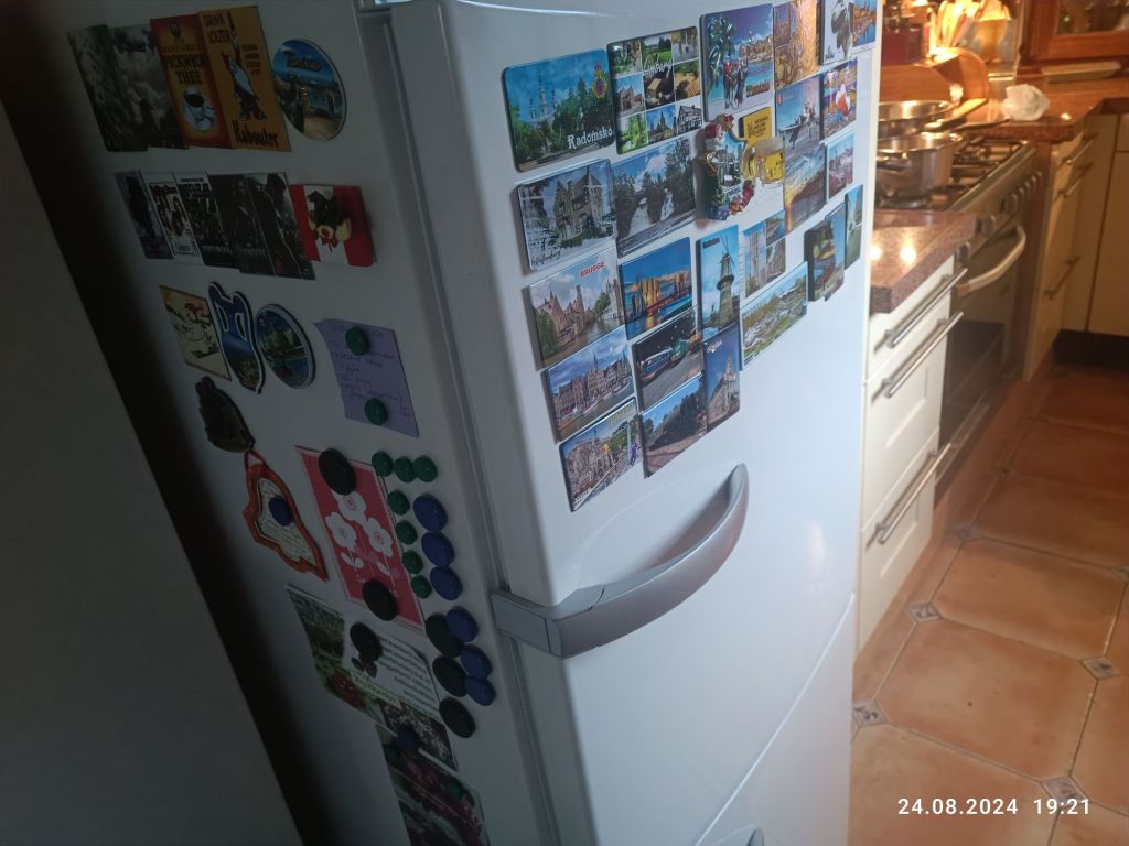A nowa lodówka działa bez zarzutu. Została obklejona magnesami, które zbieram. Ta poprzednia miała magnes tylko z boku. Ta ma na drzwiach.
