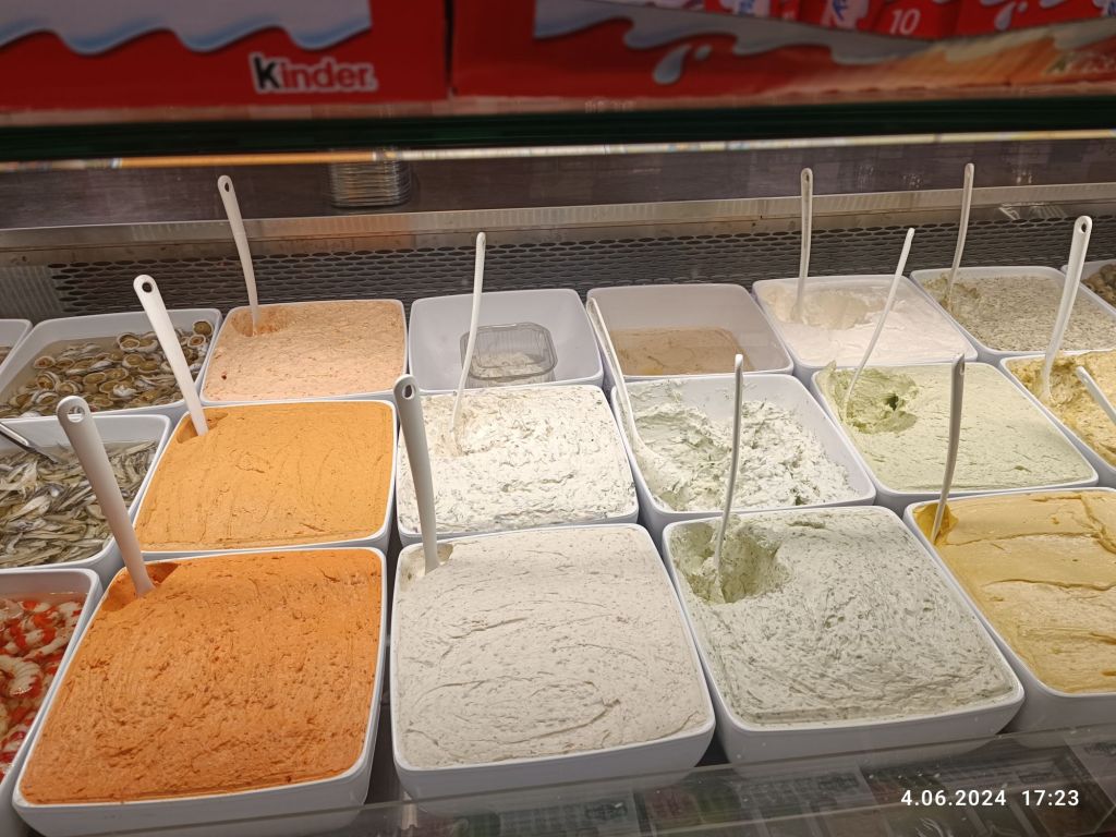 Są też różnego rodzaju sery, mrożonki, pikle, których jeszcze nie znam, ale wyglądają ciekawie, budynie, czy zupki chińskie 🙂 Przy kasach znajduje się lodówka z deserami, ciastami i tortami. Obok pieczywo i różne pasty, krewetki, oliwki czy nadziewane papryczki.